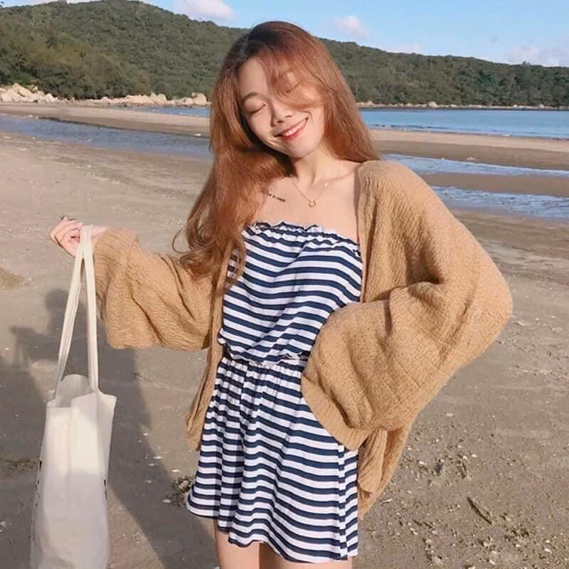 Các cô nàng tiểu thư điệu đà có thể chọn áo khoác nữ cardigan mỏng nhẹ khoác ngoài áo hoặc váy 2 dây để tăng thêm độ nữ tính cho bộ đồ của mình.