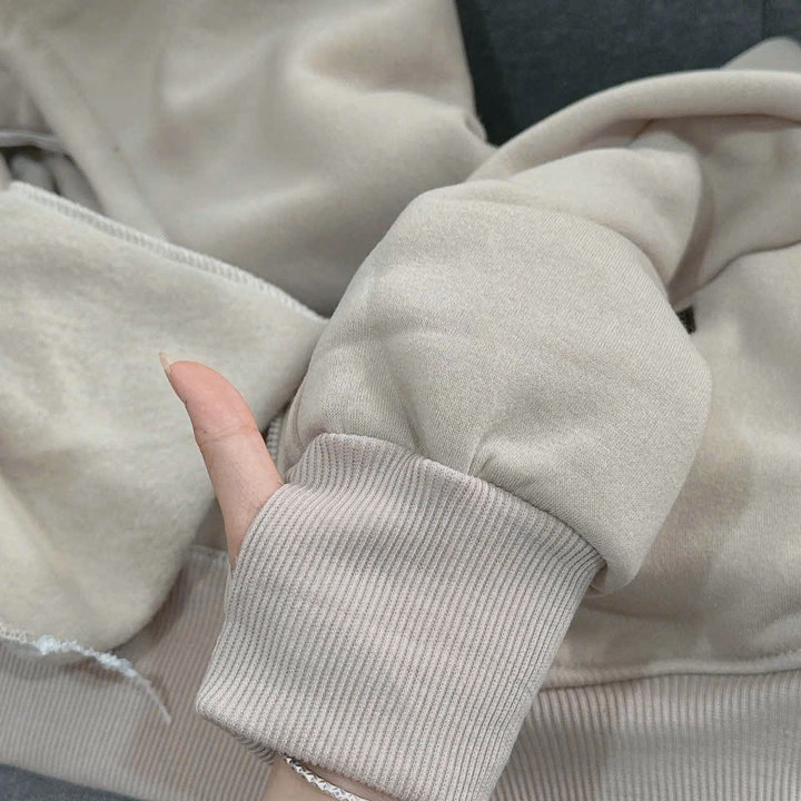 Sản phẩm được làm từ chất liệu nỉ bông dày dặn, mềm mịn, giữ ấm tốt và không gây bí bách. Phần mũ rộng che chắn tốt khỏi gió và nắng nhẹ, kết hợp khóa kéo kim loại chắc chắn giúp dễ dàng thay đổi phong cách: kéo khóa để khoác ngoài hoặc kéo kín để giữ ấm.