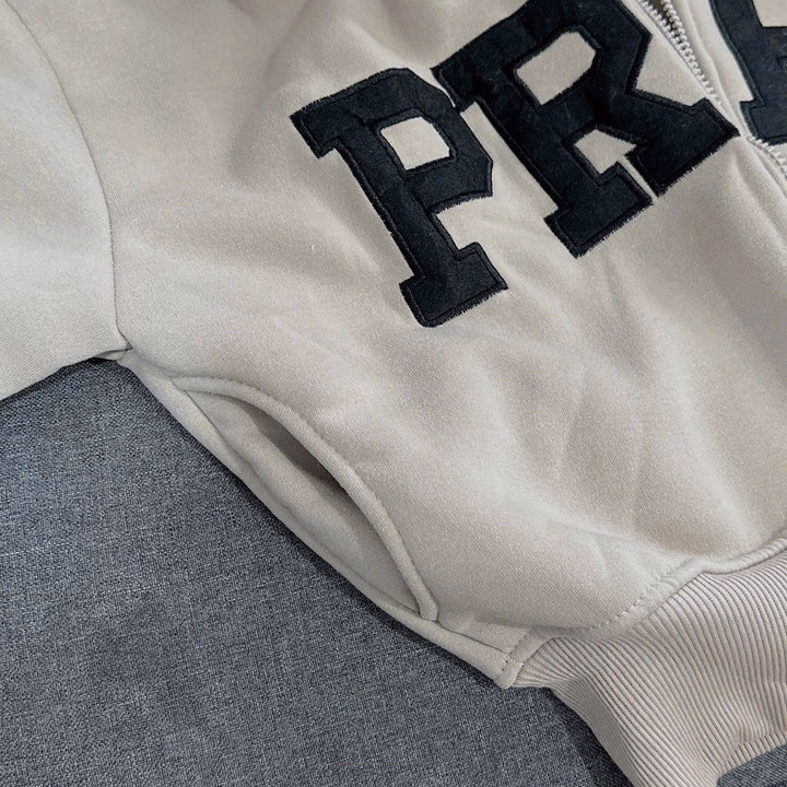 Áo Khoác Dây Kéo Vải Nỉ Phối Sọc Thân In Nổi Chữ Ở Mũ, Có Túi Trong Rộng Tp60 – Golden Dream