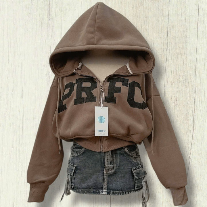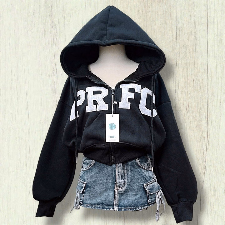 Áo hoodie nữ croptop Prfc form rộng là lựa chọn hoàn hảo cho những cô nàng yêu thích phong cách cá tính, năng động nhưng vẫn giữ được nét thời trang hiện đại. Thiết kế croptop trẻ trung giúp tôn dáng, khoe khéo vòng eo và đôi chân dài, đồng thời tạo điểm nhấn nổi bật khi mix cùng quần jean cạp cao, chân váy hoặc quần cargo.