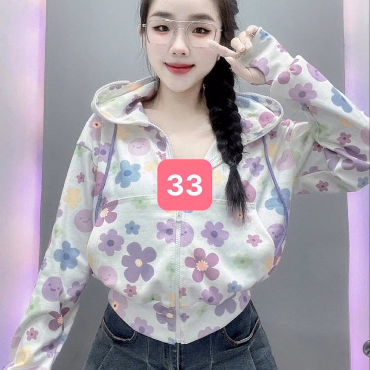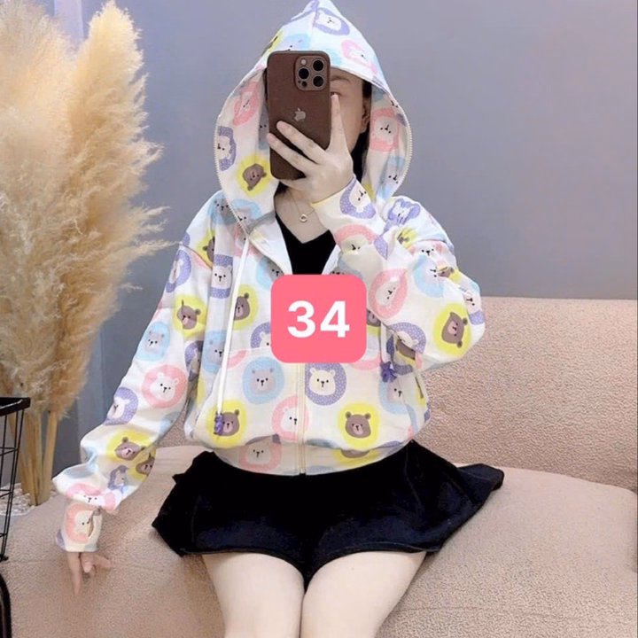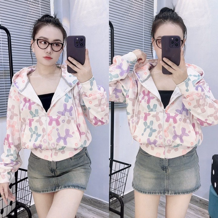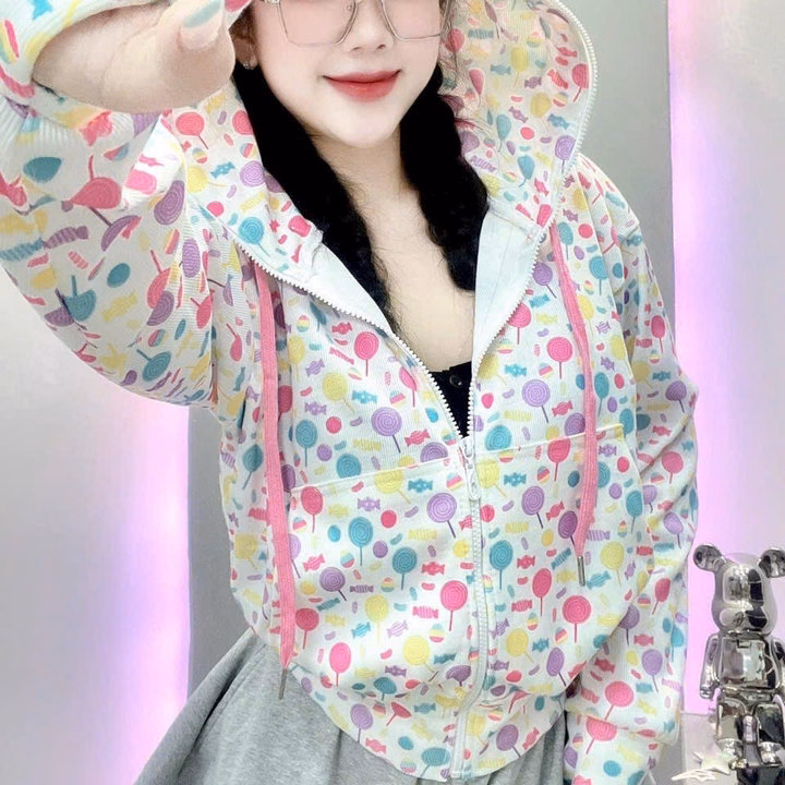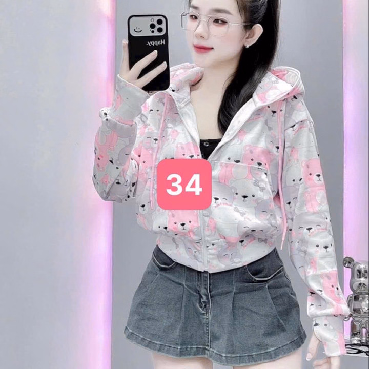 Áo Khoác Croptop Nữ Dáng Lửng Có Nón In Họa Tiết Hoạt Hình 3D -Htm Fashion