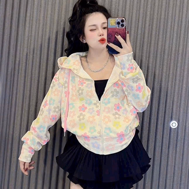 Áo Khoác Croptop Nỉ Nữ Dáng Lửng In Lá Cờ 2 Mặt Trước Sau Có Nón Chống Nắng – Htm Fashion