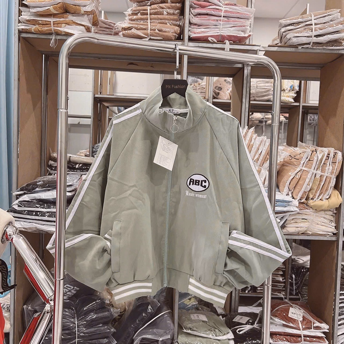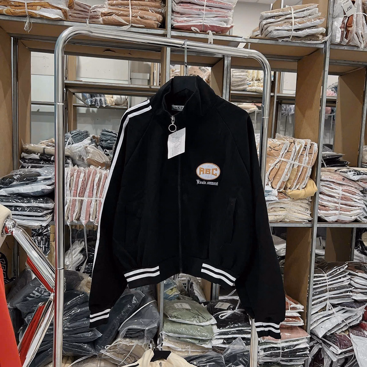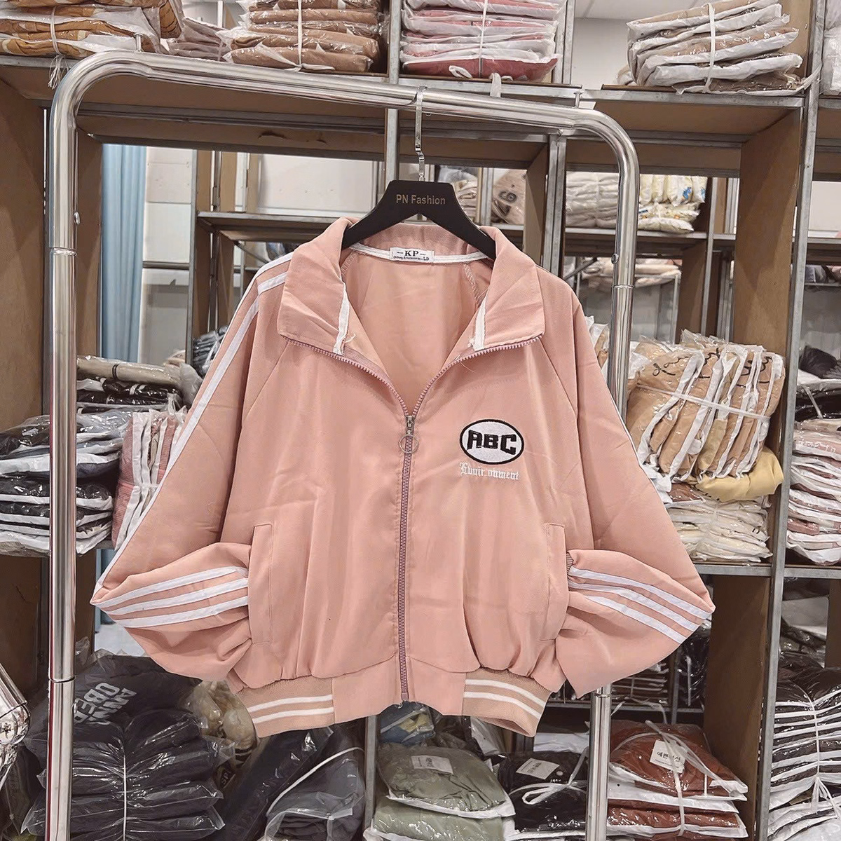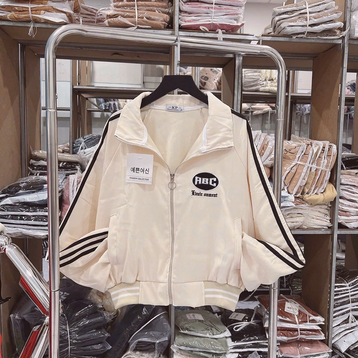 Áo Khoác Da Lộn 1 Lớp Nữ Phối 3 Sọc Cánh In Chữ Abc Siêu Đẹp Bo Chun Dưới Áo Cổ Dáng Chữ V Form Rộng Áo Thoáng Mát Hàng Hot Trend-Htm Fashion