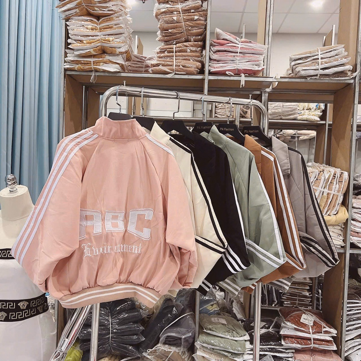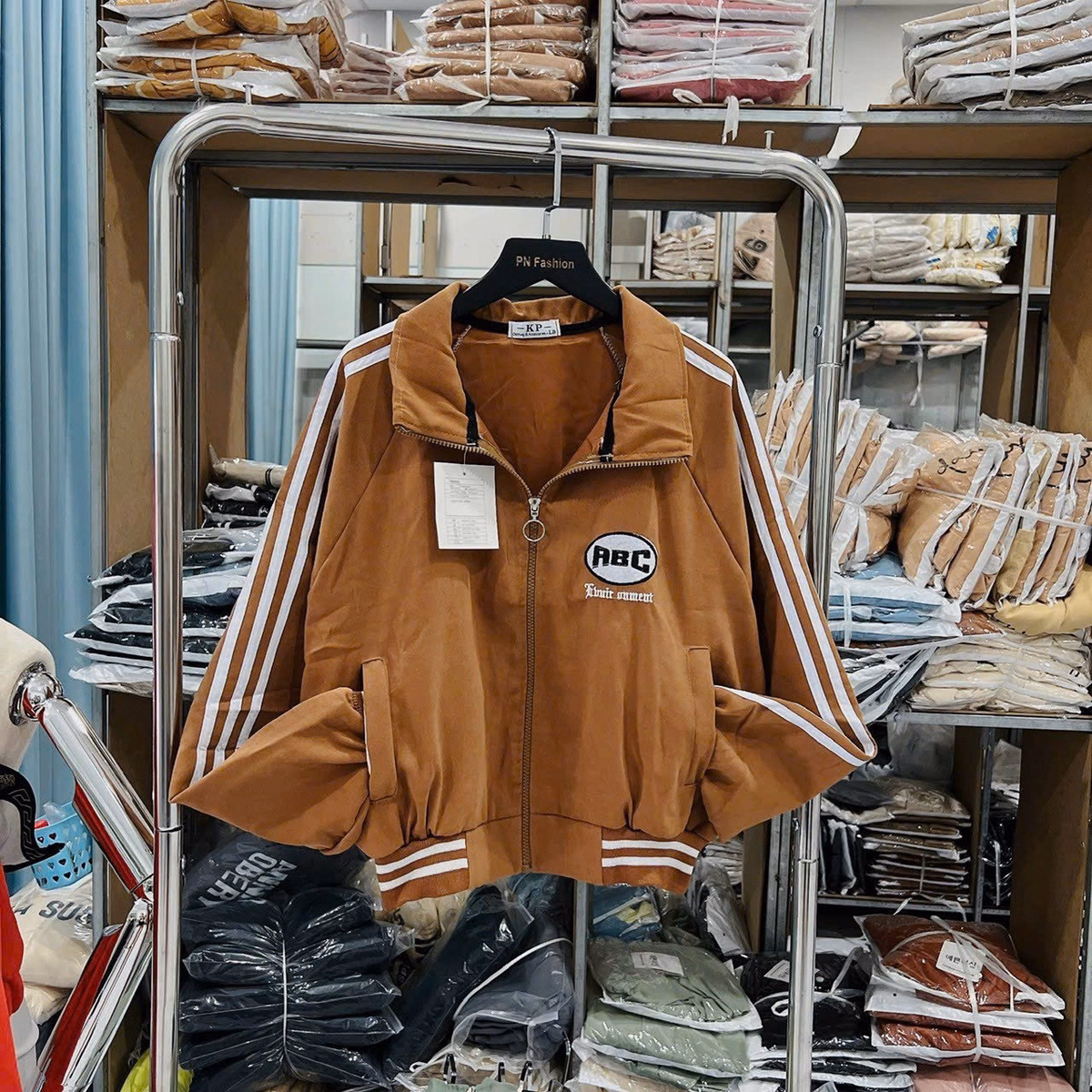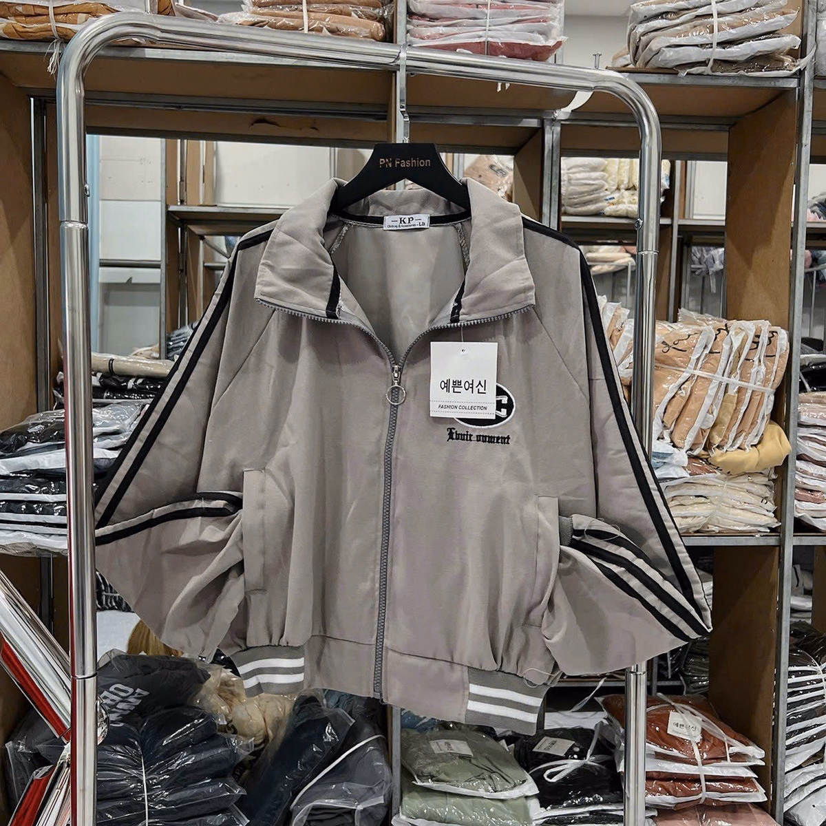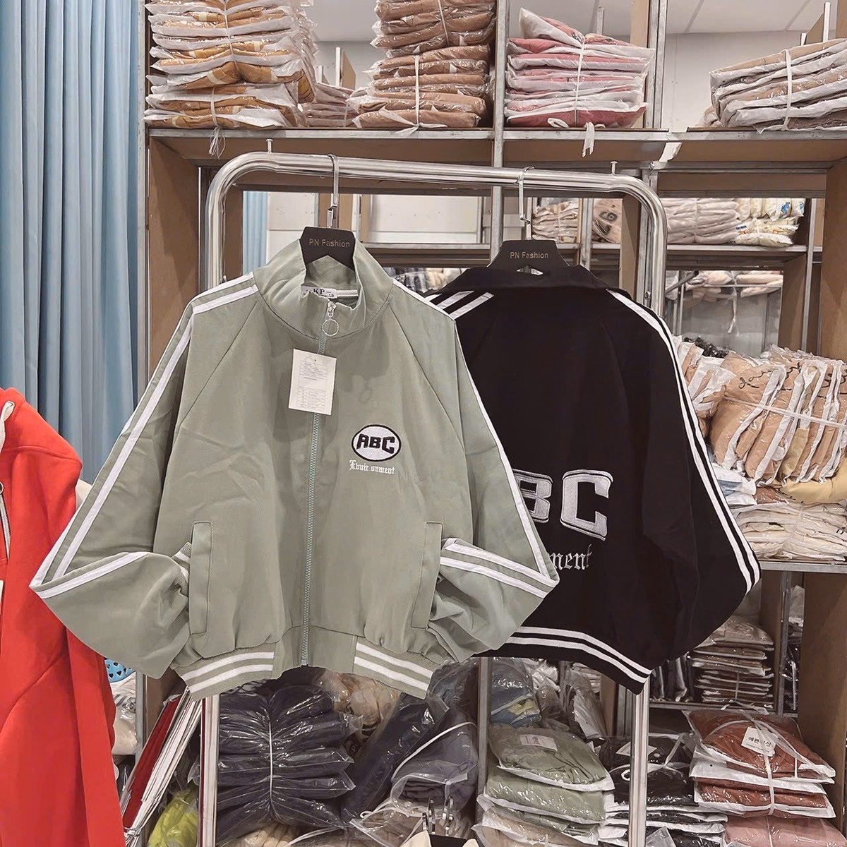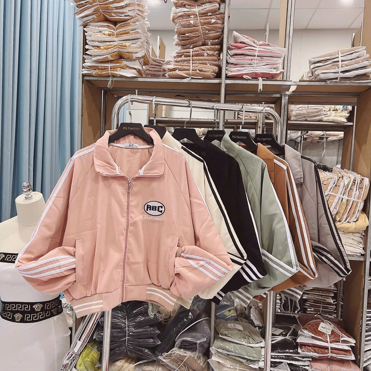 Áo Khoác Da Lộn 1 Lớp Nữ Phối 3 Sọc Cánh In Chữ Abc Siêu Đẹp Bo Chun Dưới Áo Cổ Dáng Chữ V Form Rộng Áo Thoáng Mát Hàng Hot Trend-Htm Fashion
