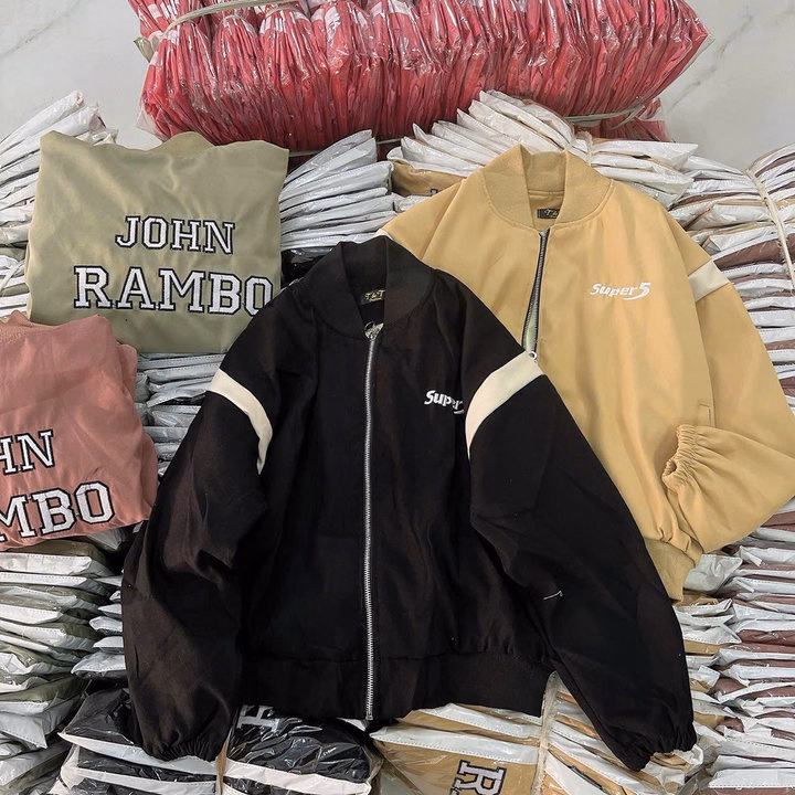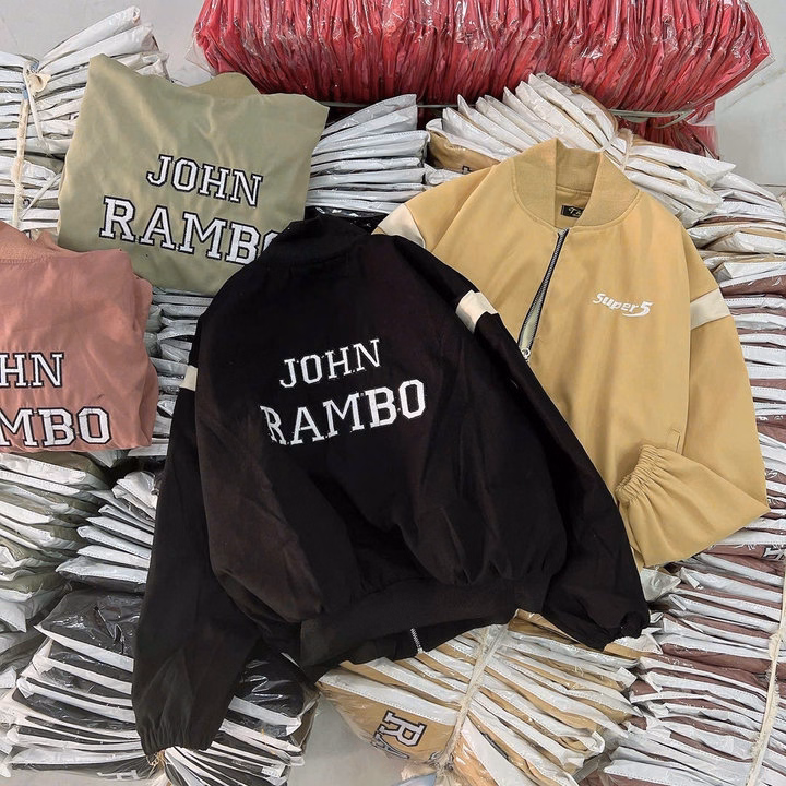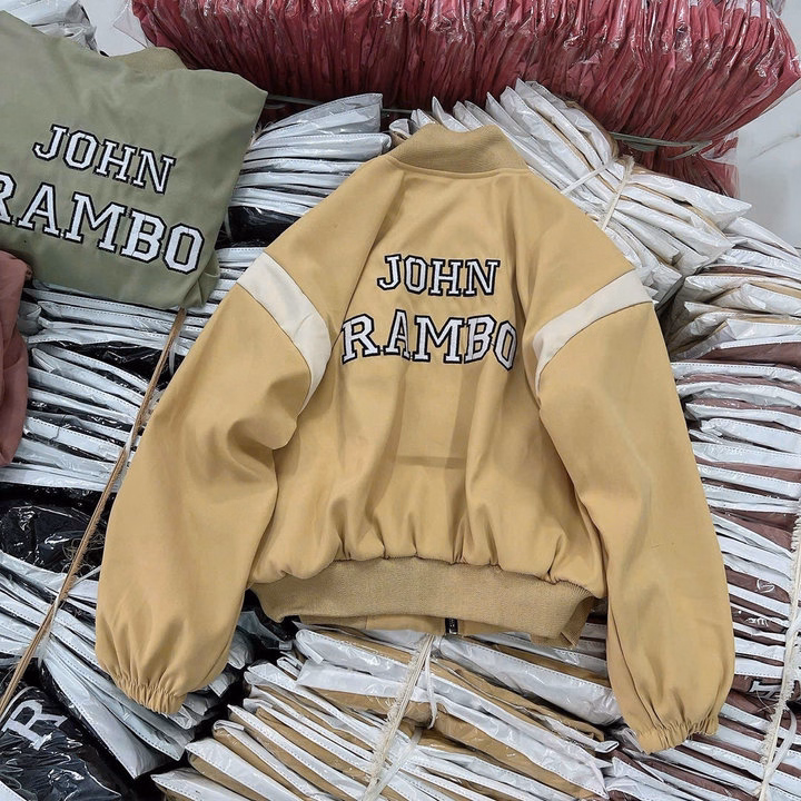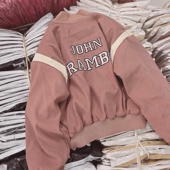 Áo Khoác Da Lộn Nữ 2 Lớp Thêu Chữ John Rambo – Htm Fashion