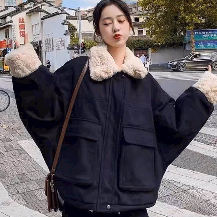 Áo Khoác Dạ Túi Hộp Cổ Và Bo Tay Phối Lông Siêu Ấm – Htm Fashion