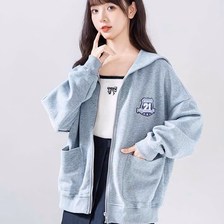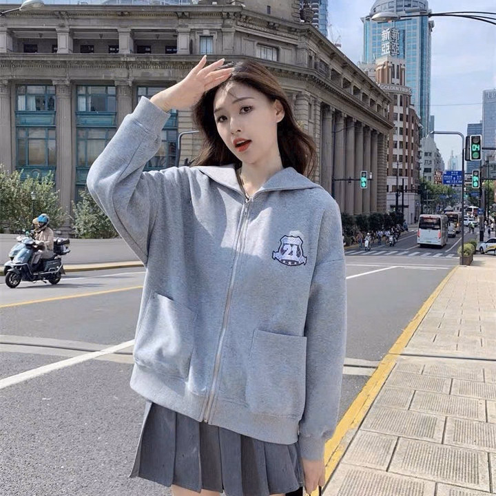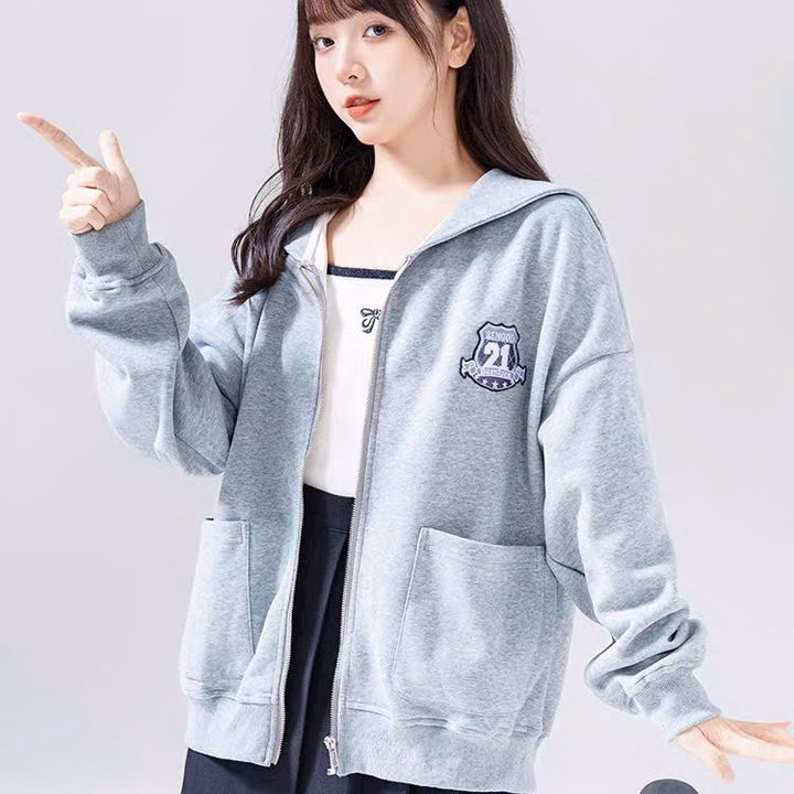 Áo Khoác Dây Kéo Nữ Vải Nỉ Màu Xám Thêu Số 21 Phối 2 Túi Trước Ut48 – Phương Store