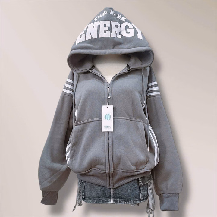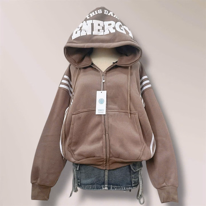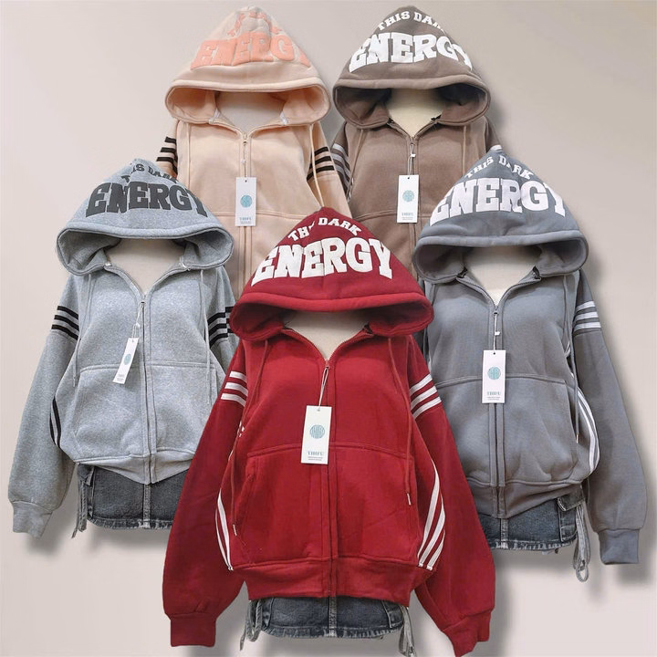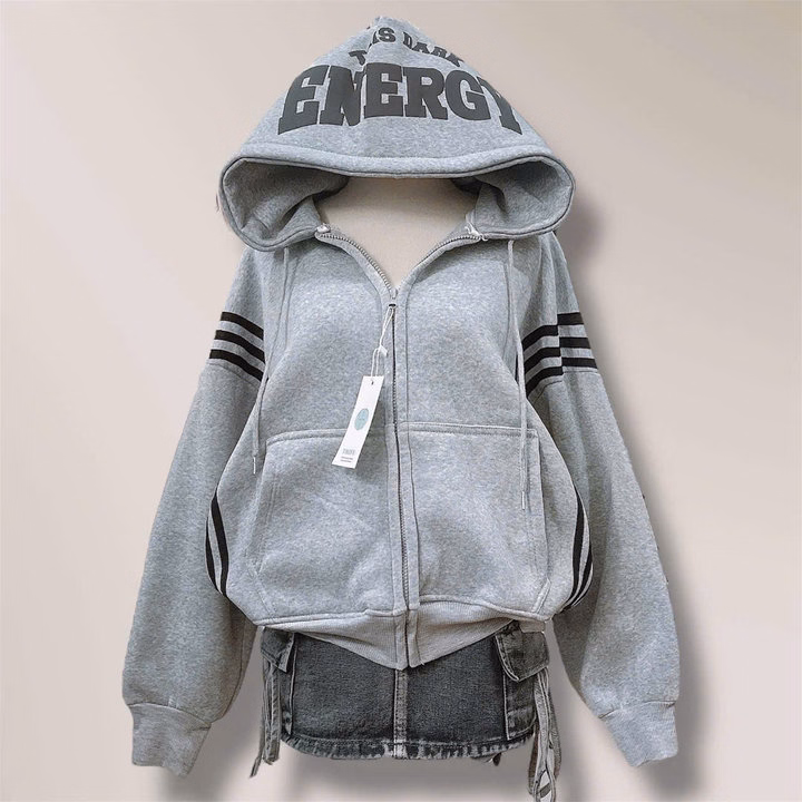 Áo Khoác Dây Kéo Vải Nỉ Phối Sọc Thân In Nổi Chữ Ở Mũ, Có Túi Trong Rộng Tp60 – Golden Dream