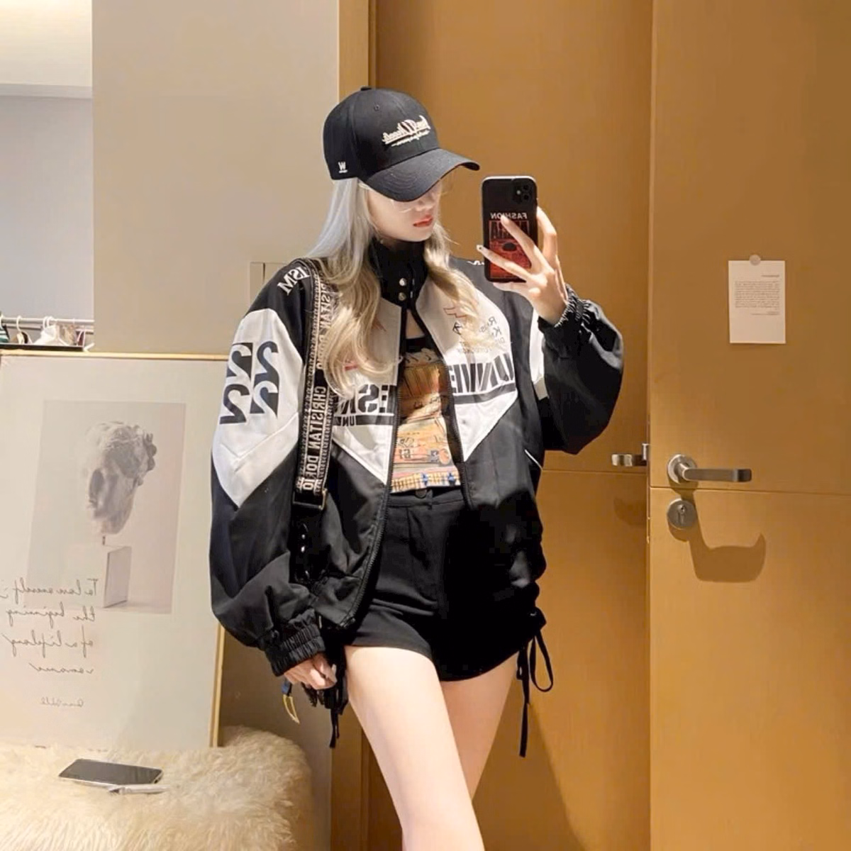 Áo Khoác Dù Gió 2 Lớp Croptop Nữ Thiết Kế Khóa Kéo Cổ Có Nút Bấm – Htm Fashion