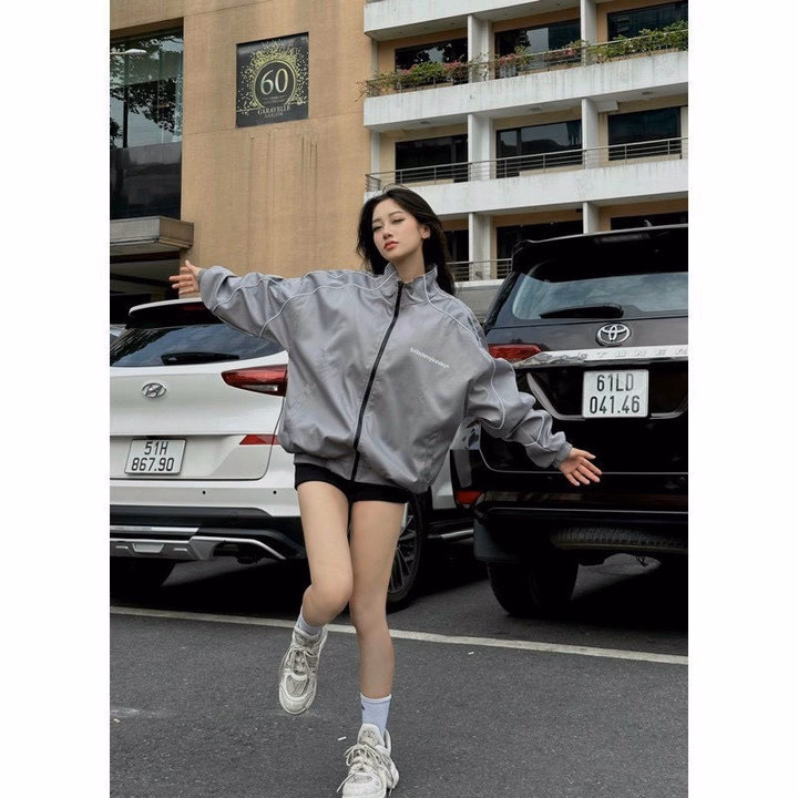Áo Khoác Dù Gió 2 Lớp Croptop Nữ Thiết Kế Khóa Kéo Cổ Có Nút Bấm – Htm Fashion