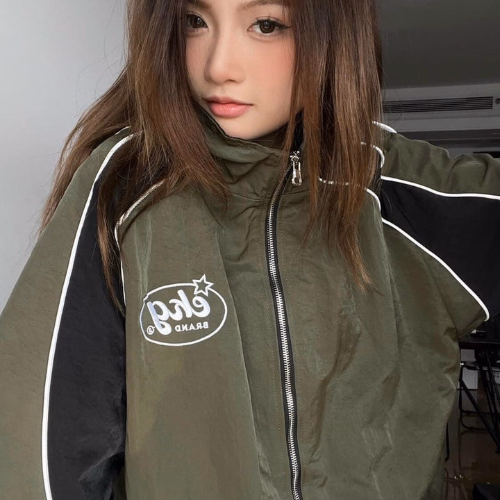 Áo Khoác Dây Kéo Vải Nỉ Phối Sọc Thân In Nổi Chữ Ở Mũ, Có Túi Trong Rộng Tp60 – Golden Dream