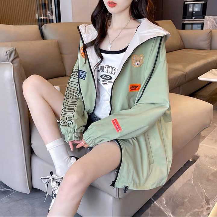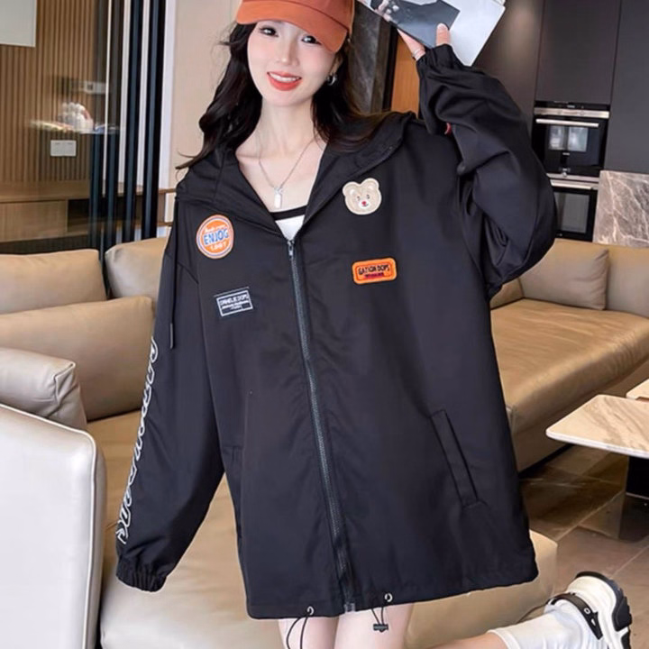 Áo Khoác Dù Ép 3 Lớp Nữ Logo Thêu Gấu Áo Dây Kéo Thời Trang Hot – Htm Fashion