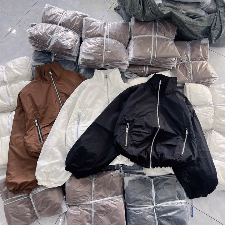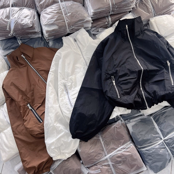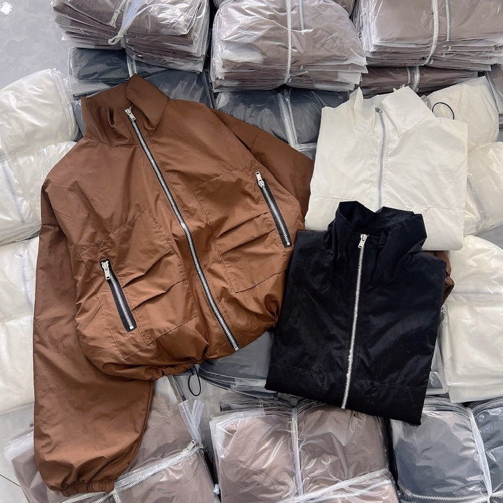 Áo Khoác Dù Gió Nhăn Croptop Nữ Cổ Trụ Thiết Kế Khóa Kéo Ở Túi – Htm Fashion