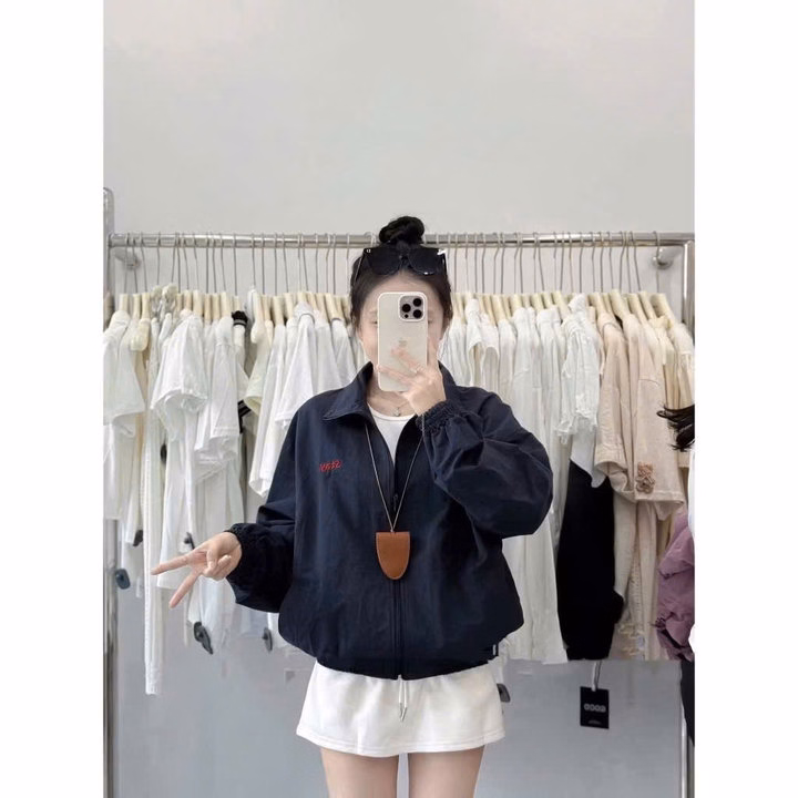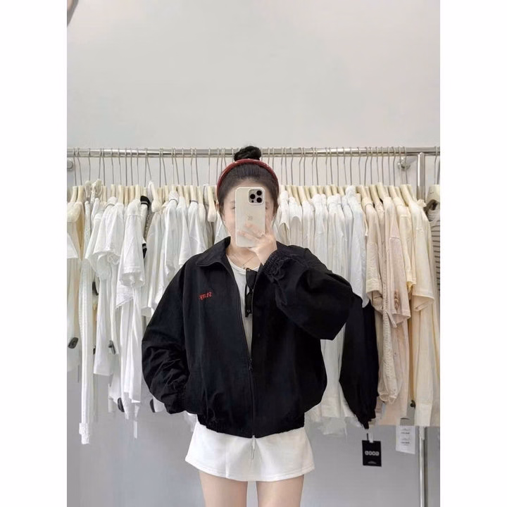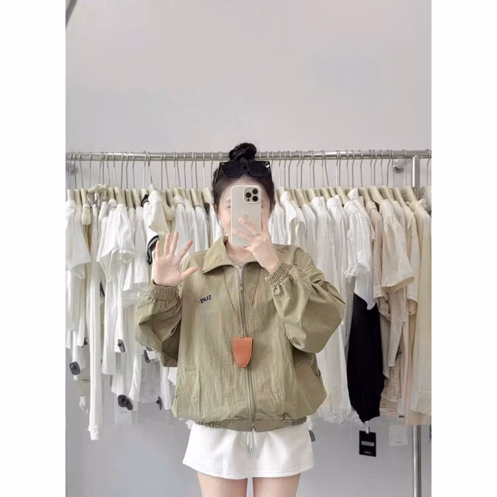 Áo Khoác Dù Gió Nhăn Nữ Cổ Bẻ Croptop Nữ Dáng Lửng Họa Tiết Thêu Stay – Htm Fashion