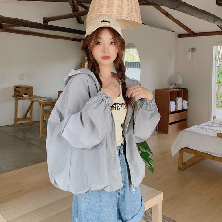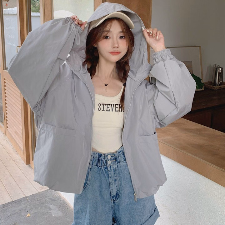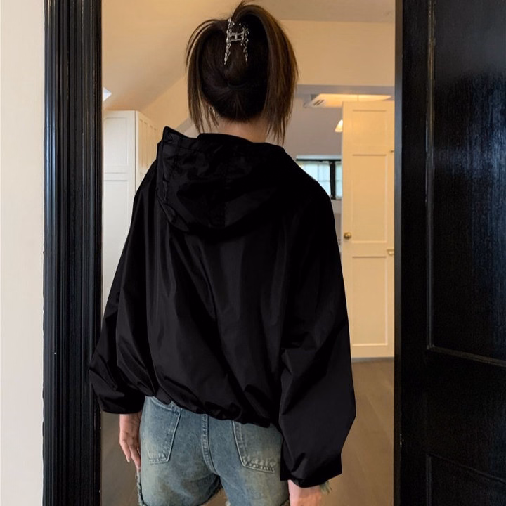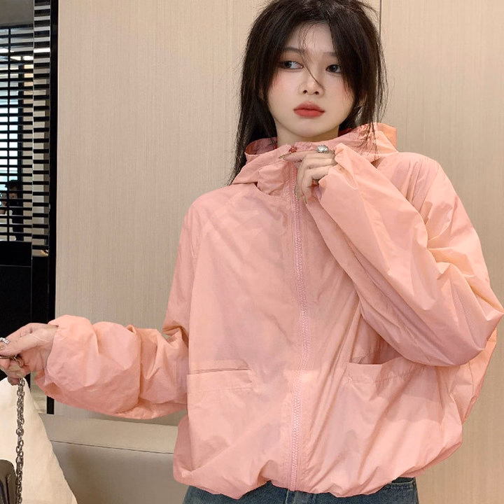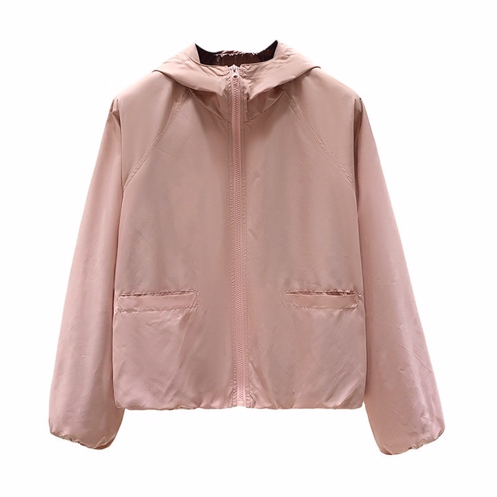 Áo Khoác Dù Gió Nhăn Trơn Nữ 2 Lớp Thiết Kế Trước Co 2 Túi Hộp Có Nón Chống Nắng – Htm Fashion