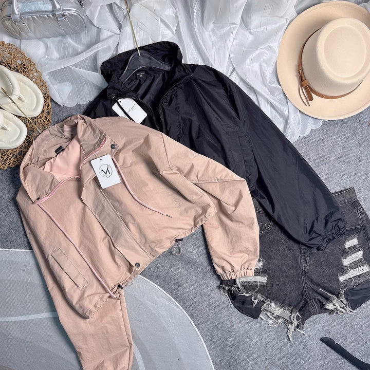 Áo Khoác Dù Gió Nữ 2 Lớp Không Nón Thiết Kế Khóa Kéo Khuy Bấm Ở Cổ – Htm Fashion