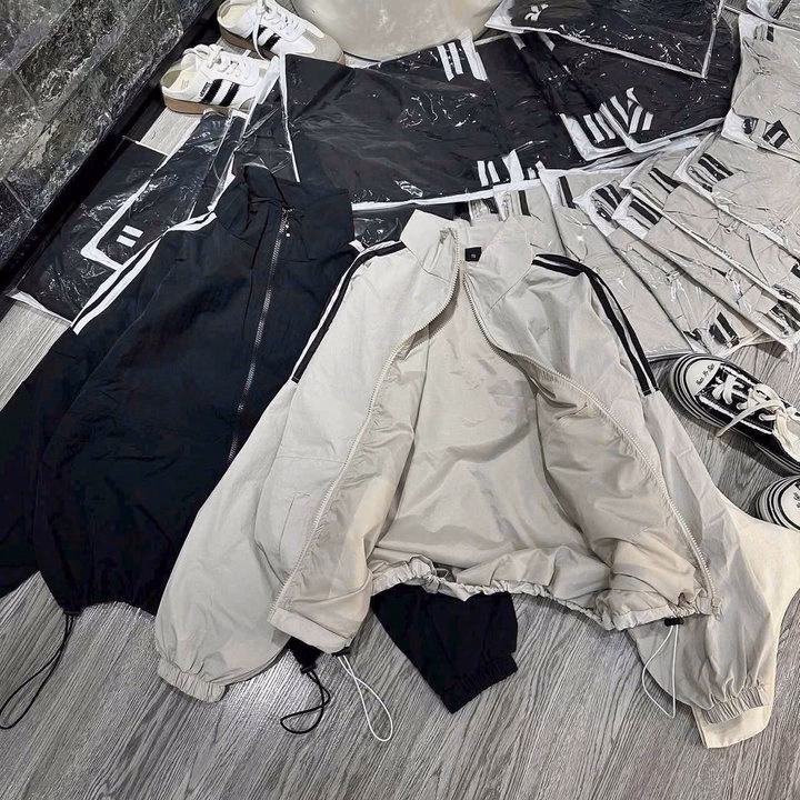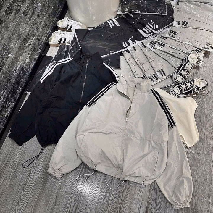 Áo có 2 màu chủ đạo: đen và xám ghi, phối sọc trắng nổi bật chạy dọc vai và tay áo, tạo điểm nhấn thể thao cá tính. Form áo oversize rộng rãi, tay bo chun, gấu áo có dây rút tùy chỉnh giúp vừa vặn với mọi vóc dáng. Khóa kéo trơn tru, bền chắc, túi áo tiện lợi để đựng điện thoại, ví hay các vật dụng nhỏ.