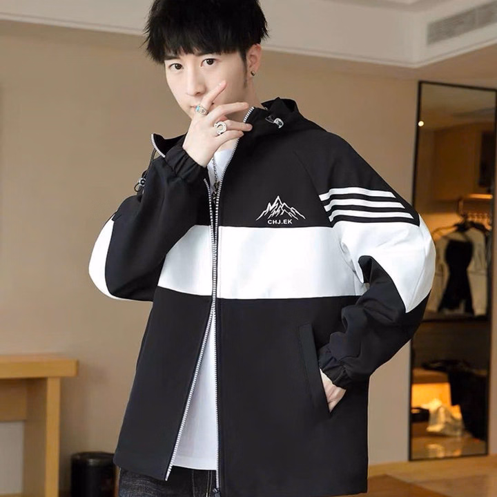 Áo Khoác Dù Nam Nữ 2 Lớp Có Nón Thêu Núi Chjek Phối Tay 3 Sọc Ngang -Htm Fashion