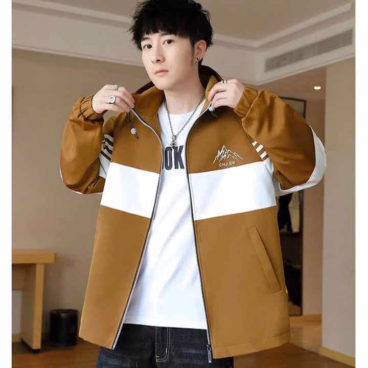 Áo Khoác Dây Kéo Vải Nỉ Phối Sọc Thân In Nổi Chữ Ở Mũ, Có Túi Trong Rộng Tp60 – Golden Dream