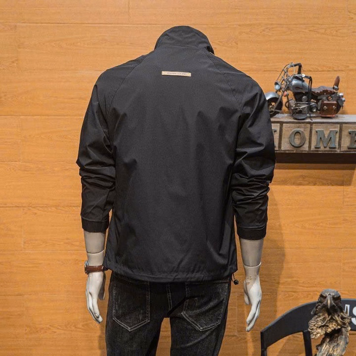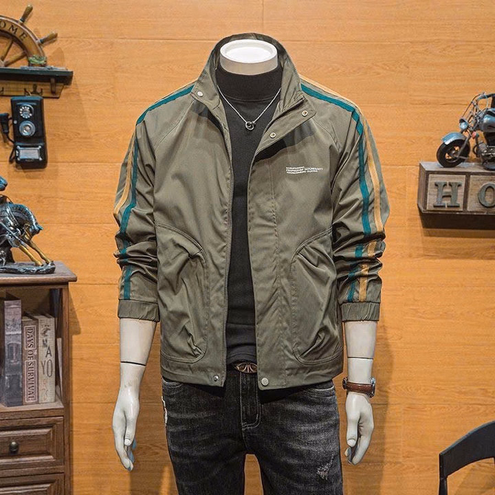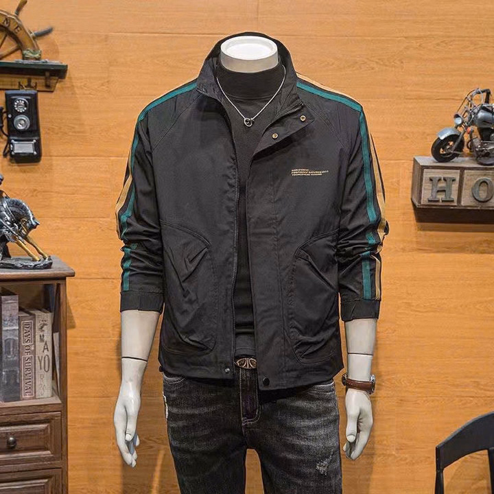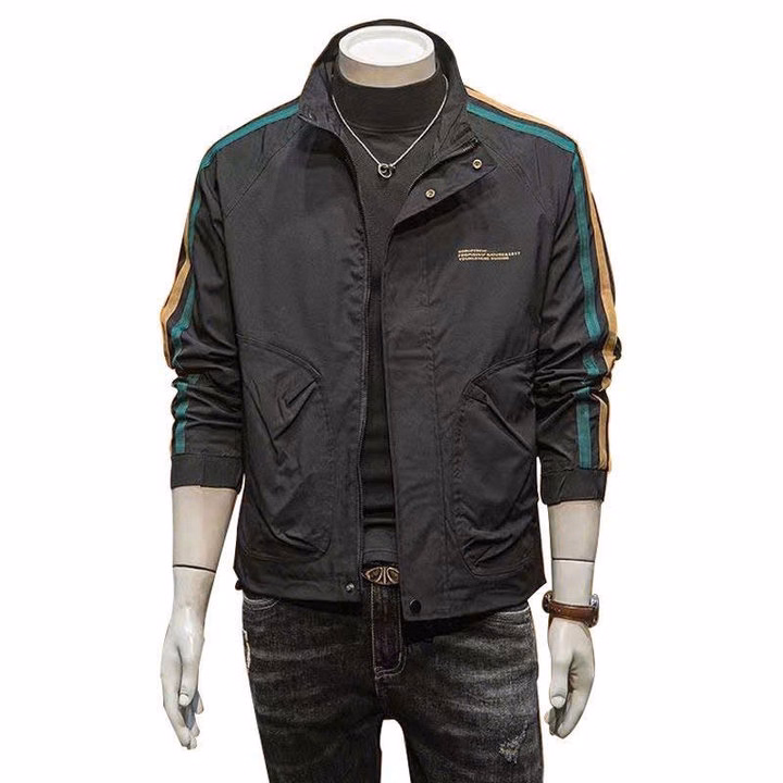 Áo khoác nam tông màu đen huyền bí kết hợp với sọc xanh phối vàng chạy dọc tay áo, tạo điểm nhấn thể thao mạnh mẽ. Với form dáng chuẩn men, ôm gọn vừa vặn, chiếc áo này giúp các chàng trai trông lịch lãm, phong trần và cực kỳ cá tính.