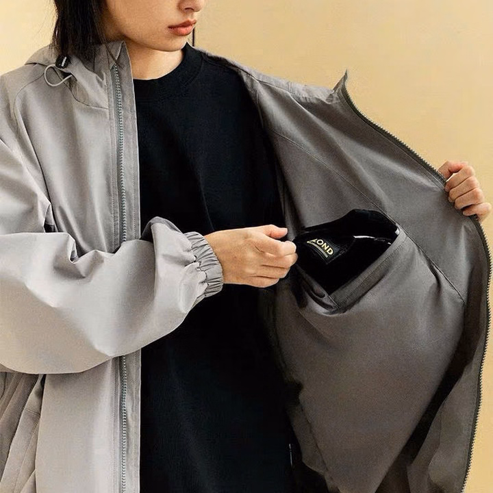 Áo Khoác Dây Kéo Vải Nỉ Phối Sọc Thân In Nổi Chữ Ở Mũ, Có Túi Trong Rộng Tp60 – Golden Dream