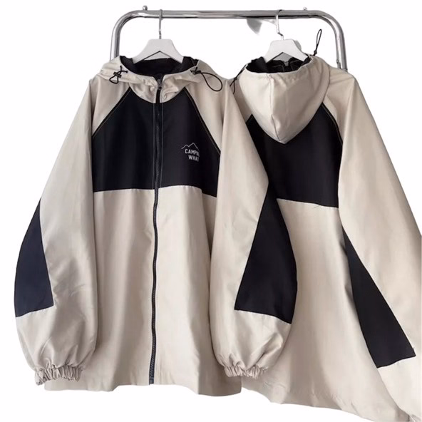 Tên sản phẩm: Áo Khoác Dù Nam Nữ Phối Nón Dây Rút Tiện Lợi In Chữ Camping What – Golden Dream