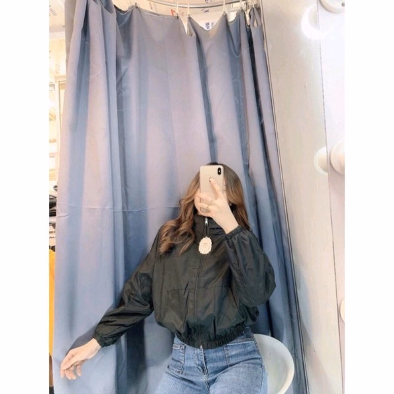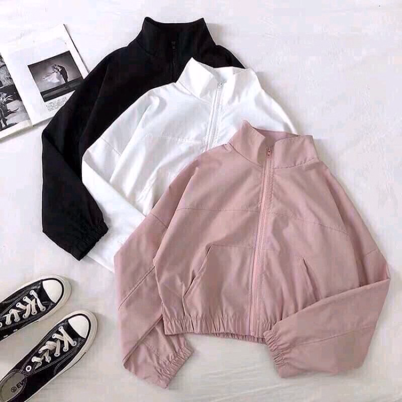 Áo Khoác Dù Gió 2 Lớp Croptop Nữ Thiết Kế Khóa Kéo Cổ Có Nút Bấm – Htm Fashion