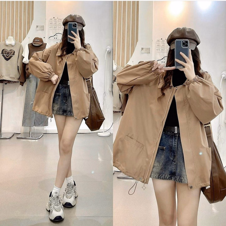 Áo Khoác Dù Nữ 2 Lớp Chất Vải Mero Trơn Nút Bấm Form Rộng Thoải Mái – Htm Fashion