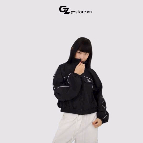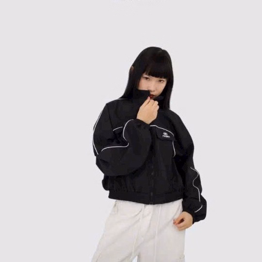 Áo Khoác Dù Gió 2 Lớp Croptop Nữ Thiết Kế Khóa Kéo Cổ Có Nút Bấm – Htm Fashion