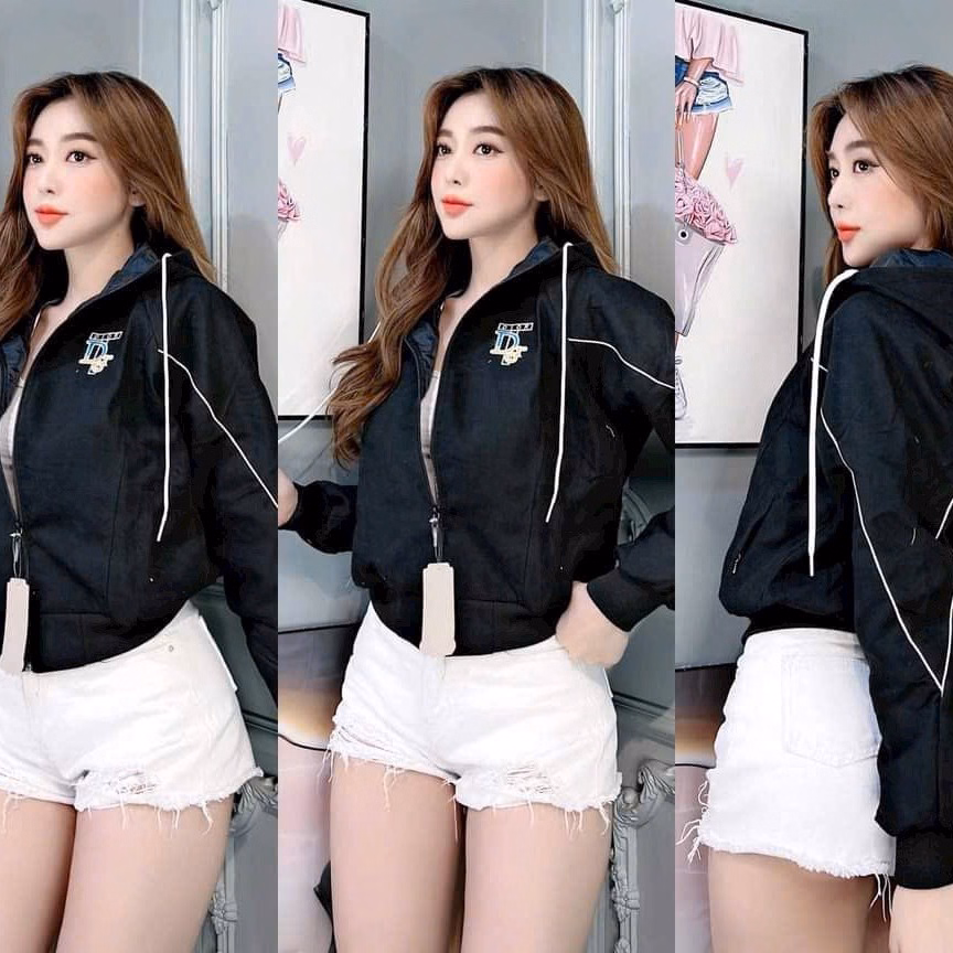 Áo Khoác Dù Nữ Phối Dáng Kiểu Lửng Siêu Xinh Kết Hợp Cùng Bo Chun Thêu Nổi Chữ Dor Kèm Nón Trùm Đầu Hàng Hot Trend-Htm Fashion