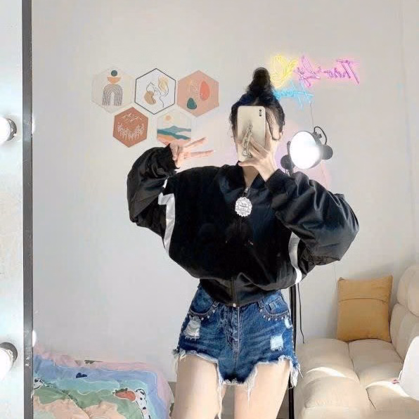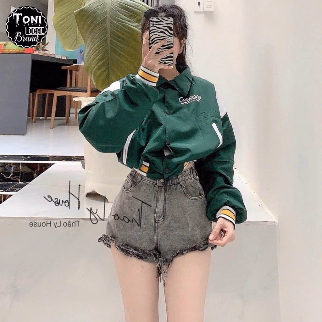 Áo Khoác Croptop Lửng Nữ Có Túi Trong Tay Xỏ Ngón Thêu Nổi Prfc – Htm Fashion