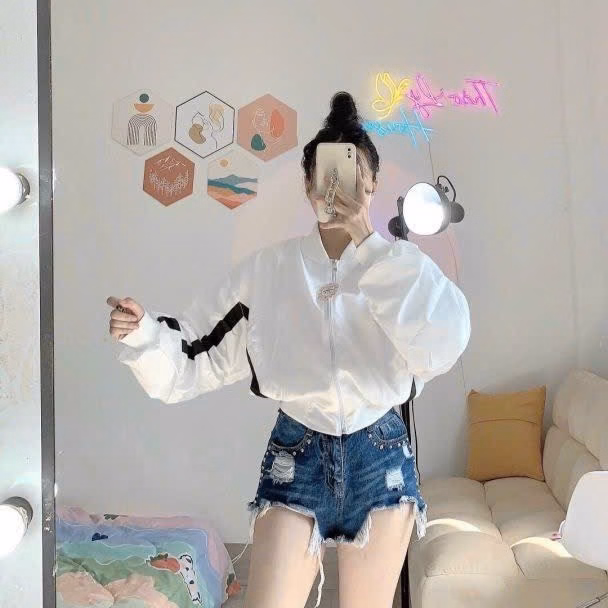 Áo Khoác Dù Nữ Với Dáng Kiểu Lửng Dài Tay Trước Áo Có 2 Viền Kẻ Sọc Chất Liệu Vải Dày Mát Mẻ Áo Đẹp Hàng Hot Trend-Htm Fashion