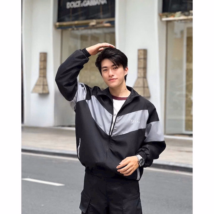1. Thông Tin Sản Phẩm: Áo khoác dù Teelab phối chéo đen xám, Áo khoác gió nam nữ Unisex 2 lớp-Sht169-Minh Hà House