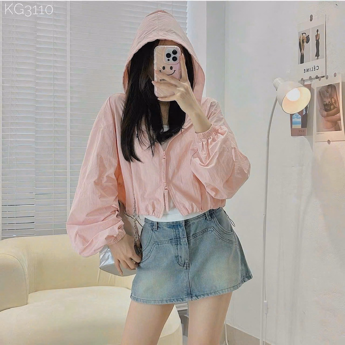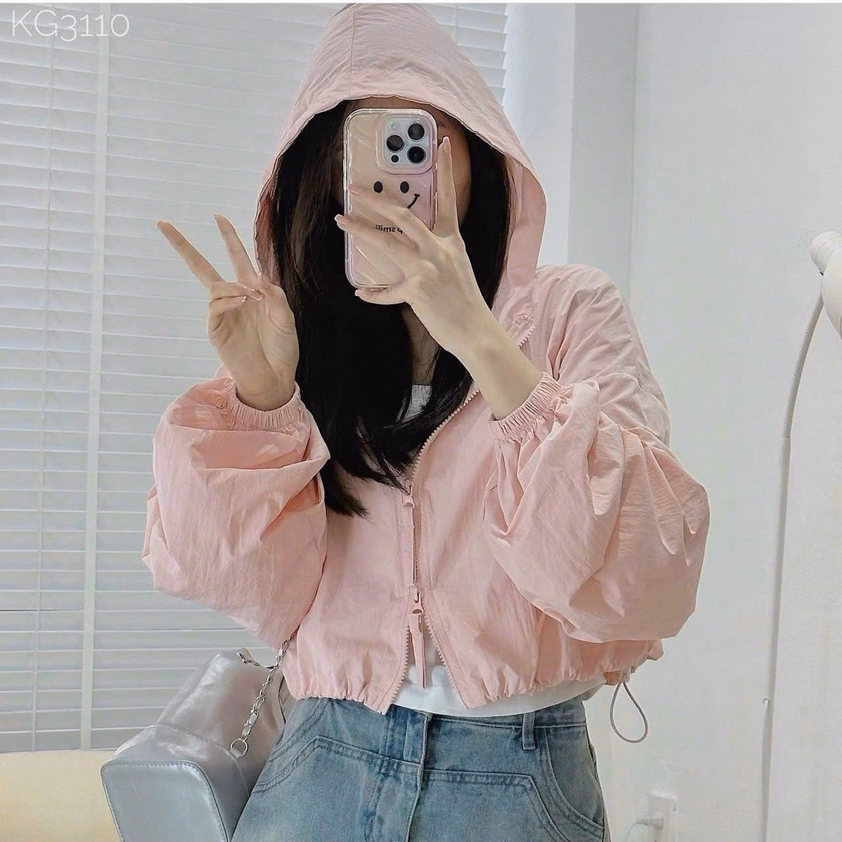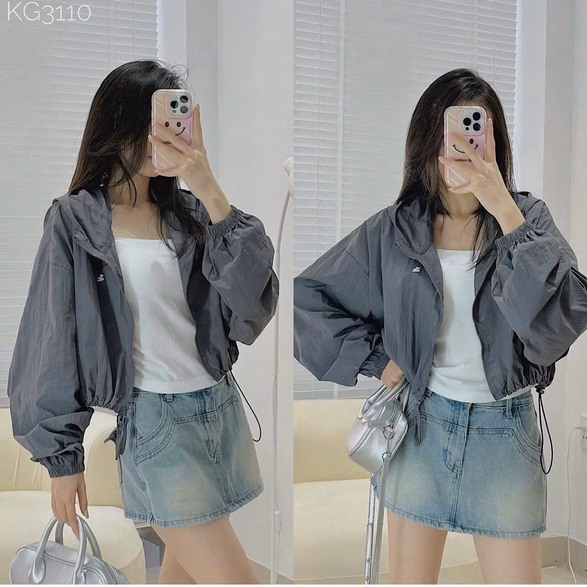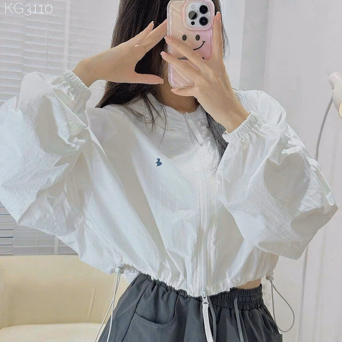 Thông tin sản phẩm: Áo Khoác Dù Trượt Nước Form Lửng Nữ Thêu Logo Dây Kéo 2 Hướng Tp72 – Golden Dream