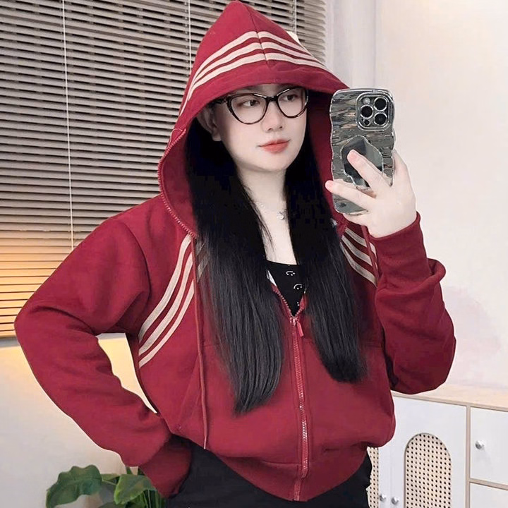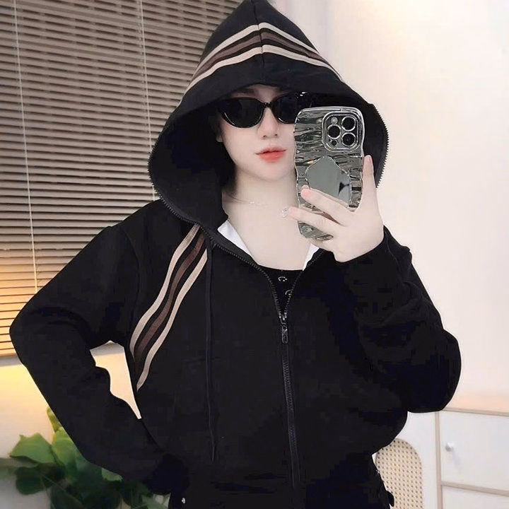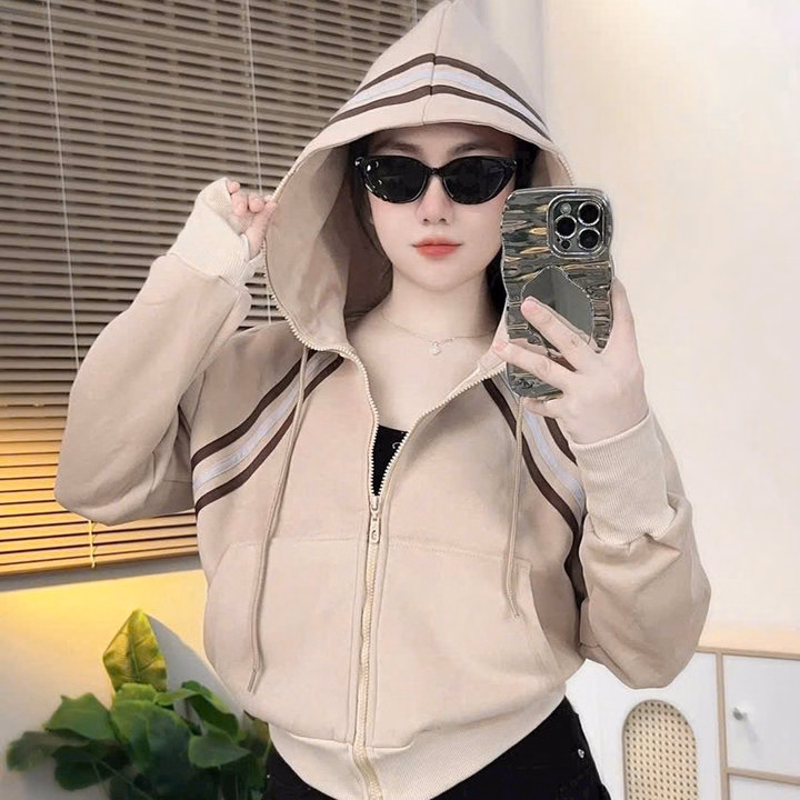 Áo Khoác Dây Kéo Vải Nỉ Phối Sọc Thân In Nổi Chữ Ở Mũ, Có Túi Trong Rộng Tp60 – Golden Dream