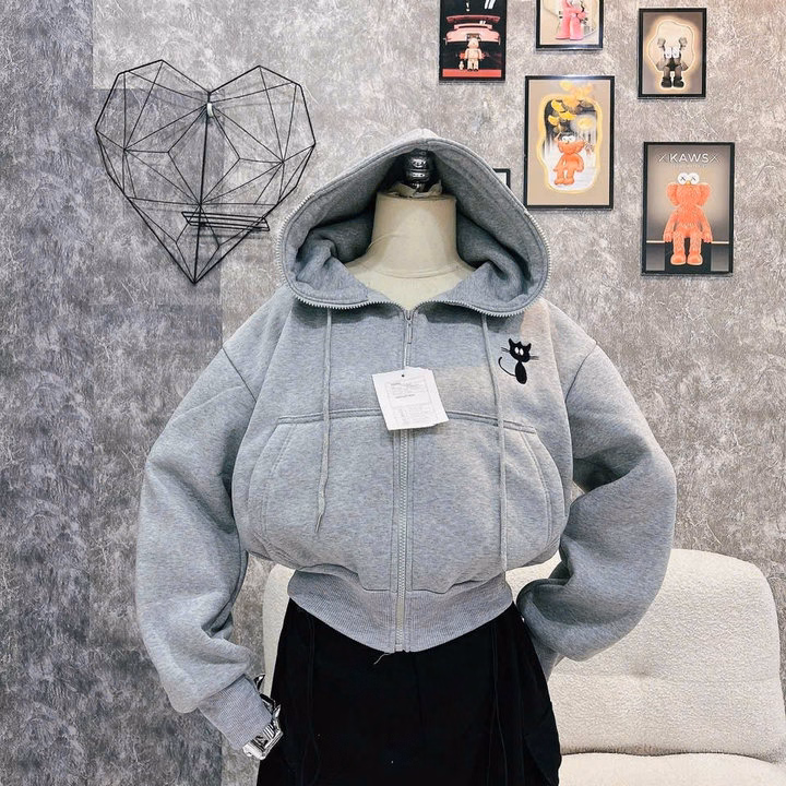 Áo Khoác Form Lửng Nữ Vải Nỉ Nón Rộng 2 Lớp Thêu Hình Mèo Con Tp50 – Golden Dream