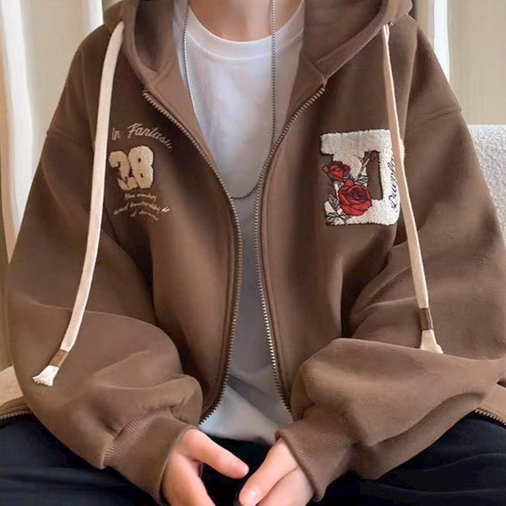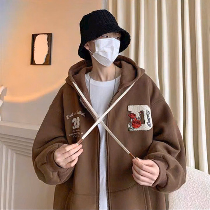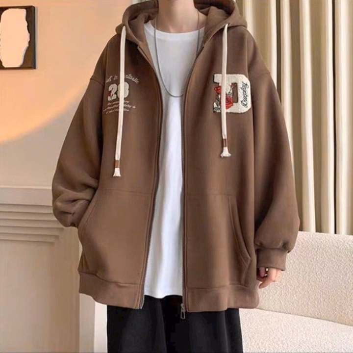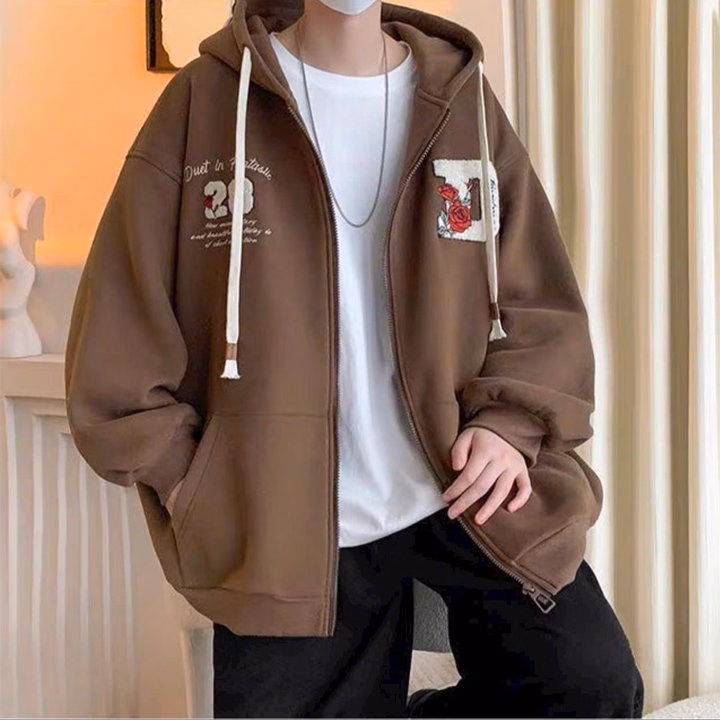 Áo Khoác Dây Kéo Vải Nỉ Phối Sọc Thân In Nổi Chữ Ở Mũ, Có Túi Trong Rộng Tp60 – Golden Dream