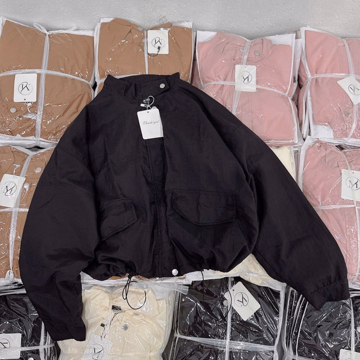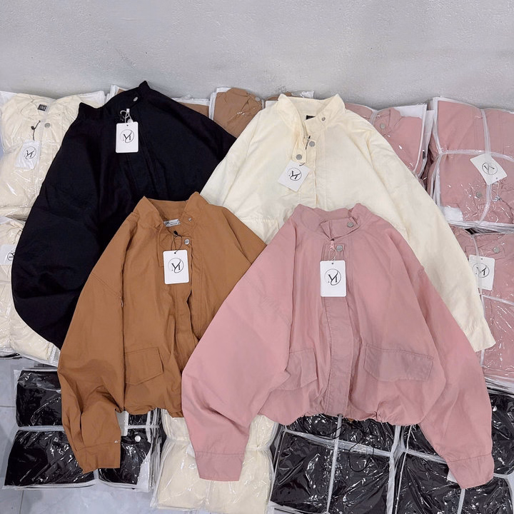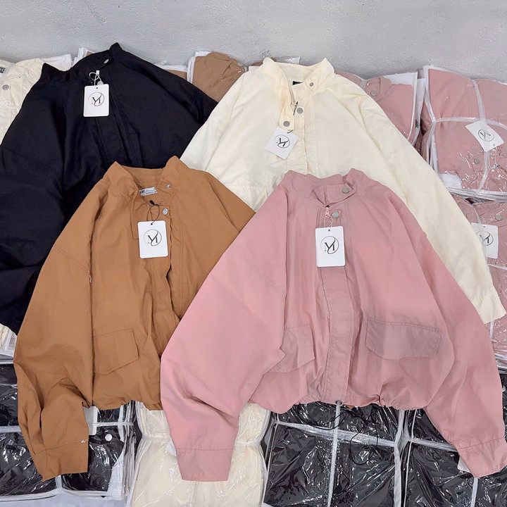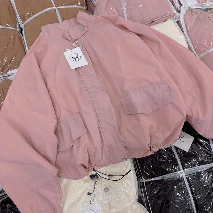 Áo Khoác Dù Gió 2 Lớp Croptop Nữ Thiết Kế Khóa Kéo Cổ Có Nút Bấm – Htm Fashion