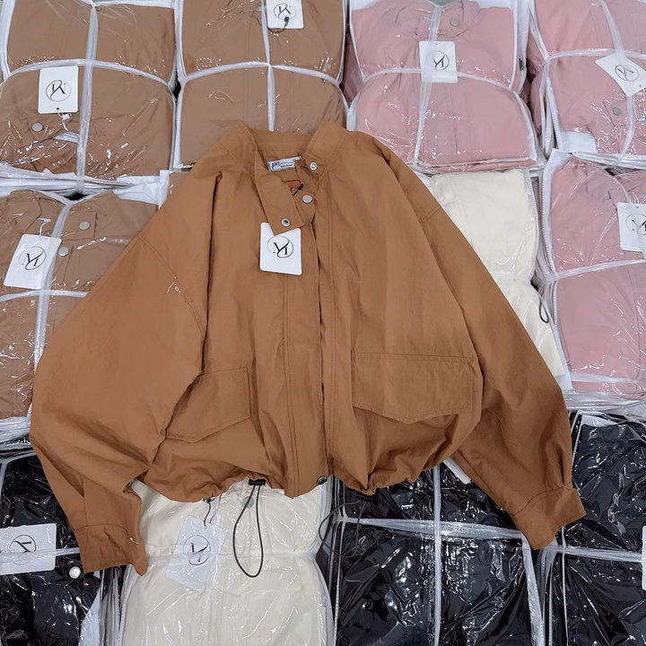 Áo Khóac Gió Nhăn Thiết Kế Trong Khóa Kéo Ngoài Khuy Bấm – Htm Fashion
