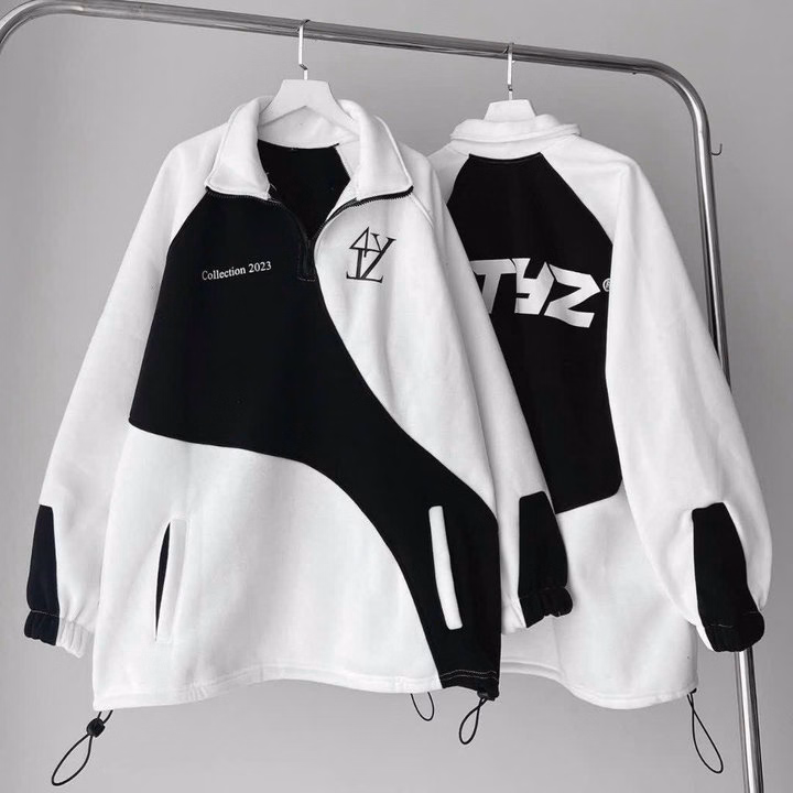 “Áo Khoác Hoodie 4Tyz Nỉ Bông Dày Dặn Phối Màu Đen Trắng Dây Rút Form Rộng Unisex – Sht160 – Minh Hà House “