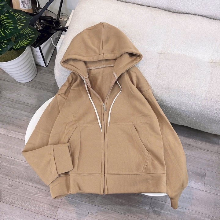 Áo Khoác Hoodie Khóa Kéo Có Nón Phối Trơn Nhiều Màu – Htm Fashion
