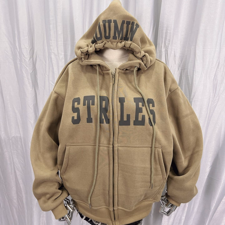 Áo hoodie zip phong cách streetwear với thiết kế chữ in nổi bật “Streles” trước ngực và họa tiết “Loumin” trên mũ, mang lại vẻ ngoài năng động, trẻ trung và cực kỳ cá tính. Sản phẩm được may từ chất nỉ bông cao cấp, vải dày dặn nhưng mềm mịn, giữ ấm tốt trong mùa lạnh, đồng thời vẫn đảm bảo sự thoáng mát, thoải mái khi mặc cả ngày dài.