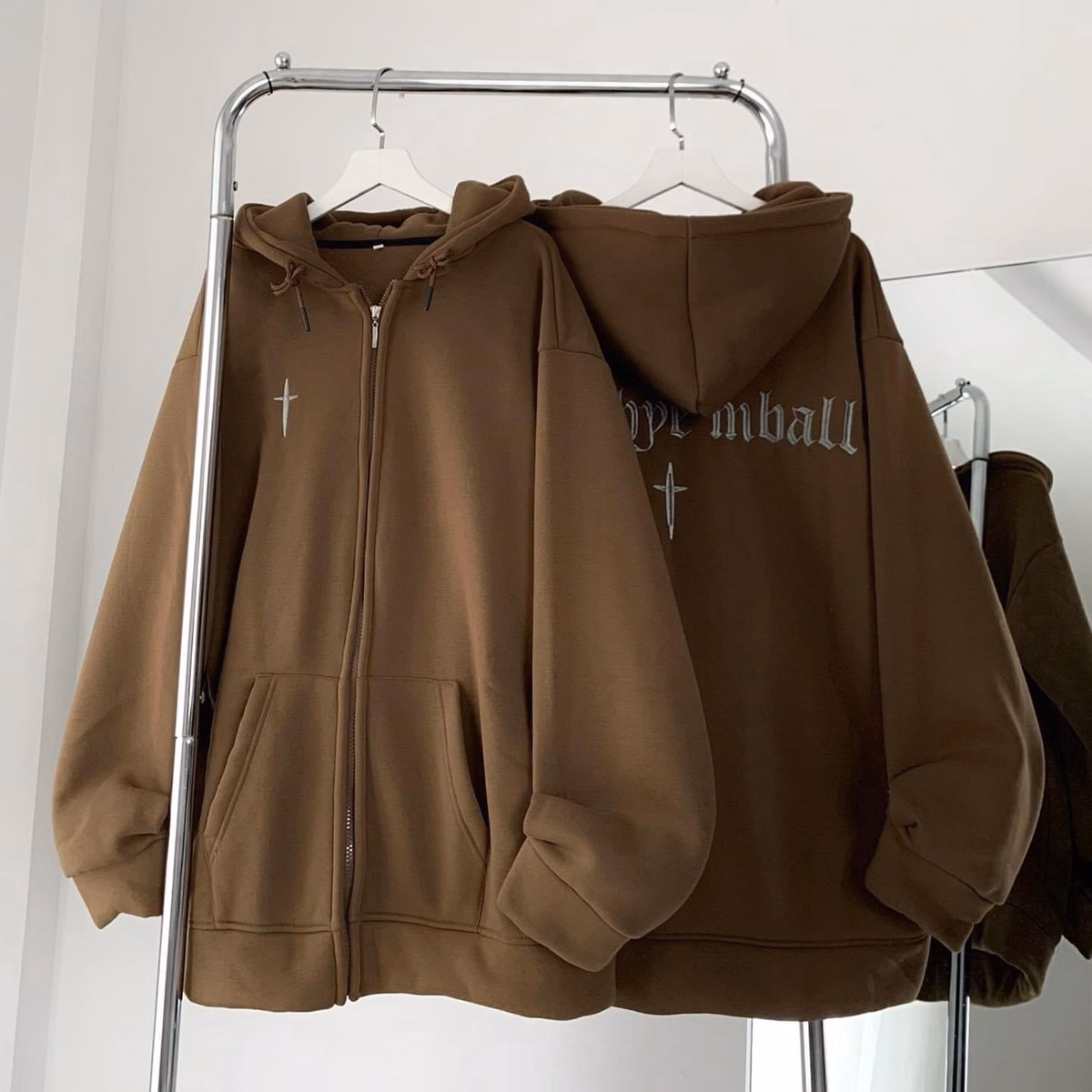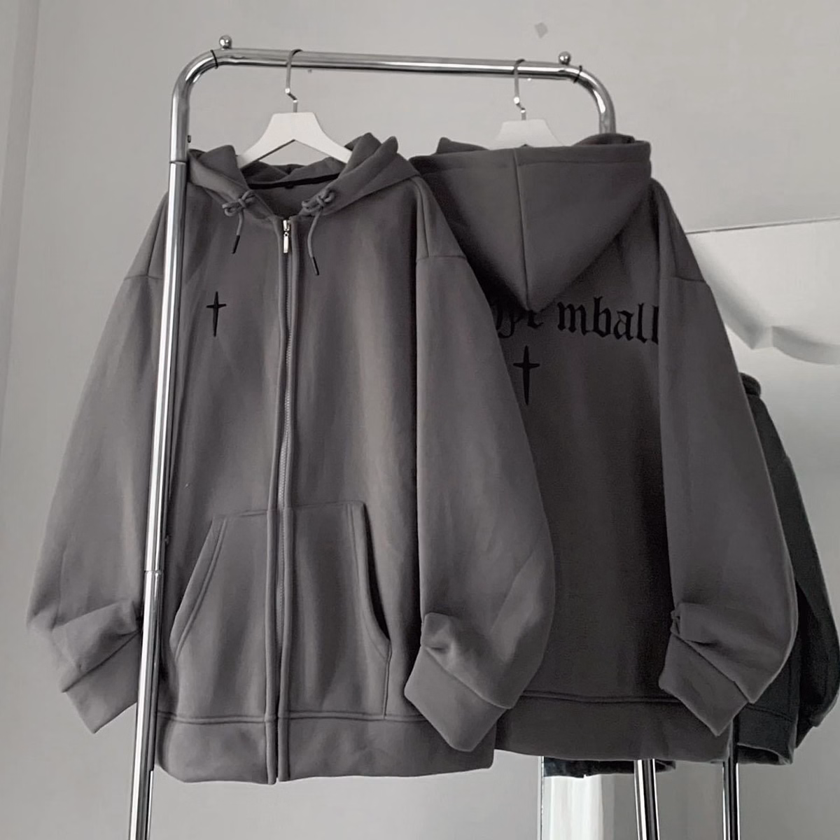 Áo Khoác Hoodie Nỉ Có In Chữ Thập Trước Áo Nam Nữ Form Rộng Vải Dày Dặn Kèm Nón Trùm Đầu To Đẹp Khóa Kéo Zip Xịn Hàng Hot Trend-Htm Fashion