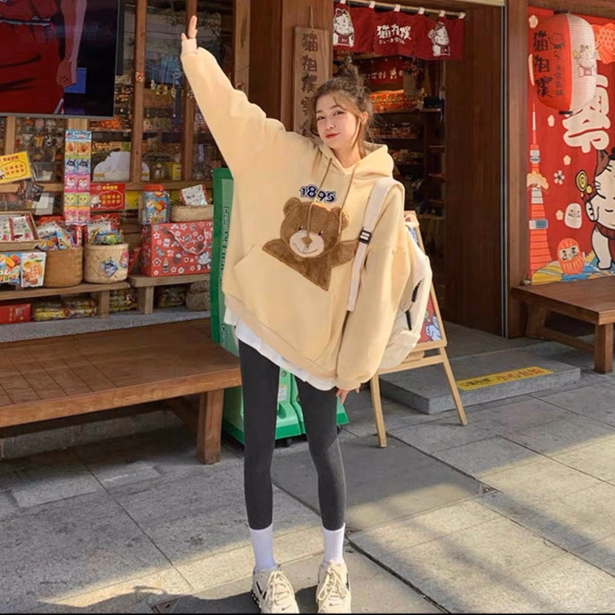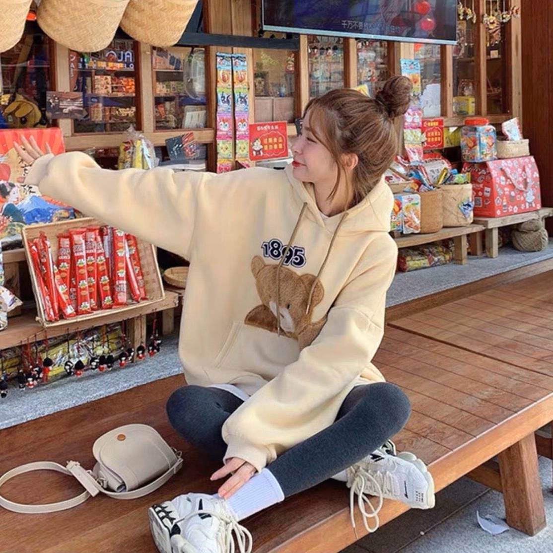 Áo Khoác Hoodie Nỉ Nam Nữ Có In Hình Bé Gấu Siêu Đáng Yêu Chất Dáng Form Rộng Vải Dày Mịn Kèm Nón Xinh Hàng Hot Trend-Htm Fashion