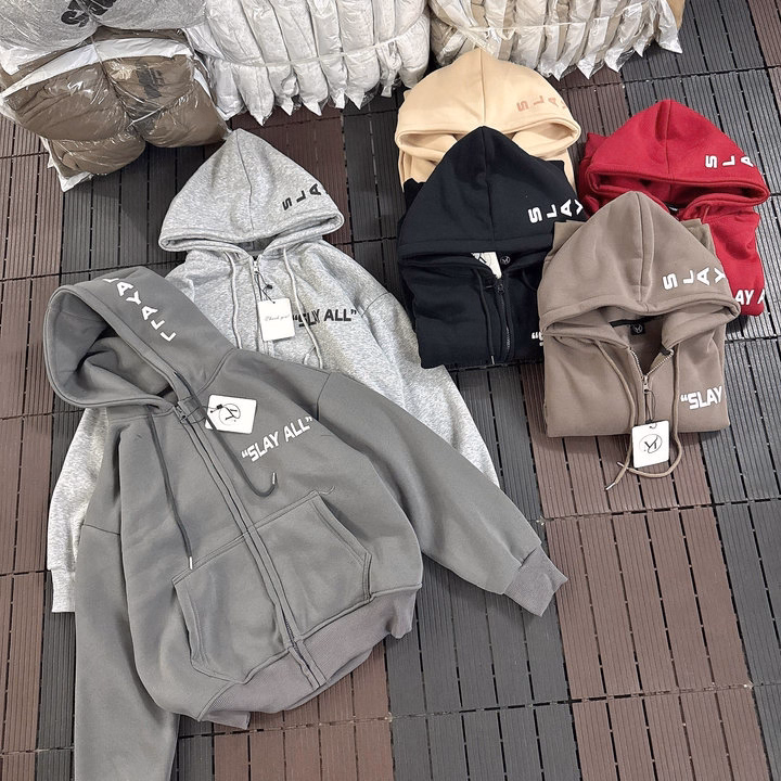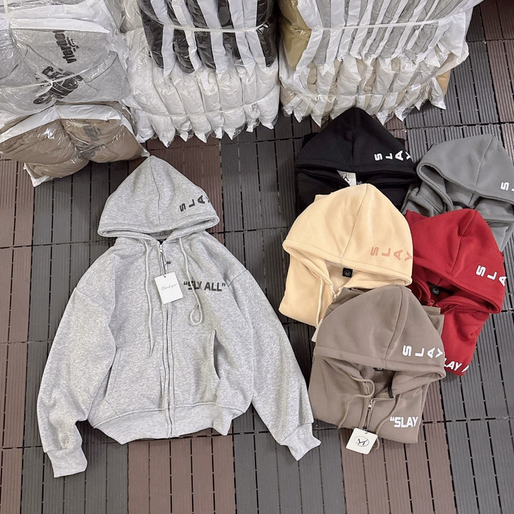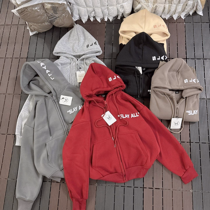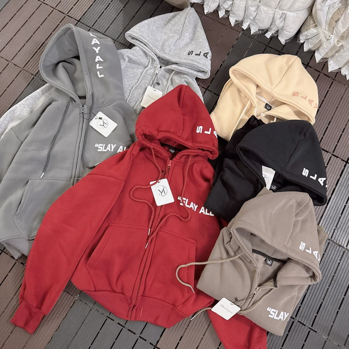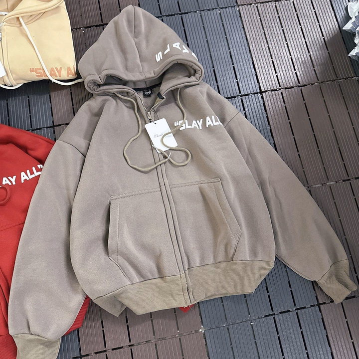 Áo hoodie zip unisex phong cách basic hiện đại, dễ phối đồ và cực kỳ tiện lợi. Thiết kế có khóa kéo trước, mũ trùm đầu rộng rãi và túi kangaroo hai bên, thích hợp mặc trong mọi hoàn cảnh từ đi học, đi chơi đến dạo phố. Trên áo được in dòng chữ “Slay All” nổi bật ở ngực và mũ, tạo điểm nhấn cá tính nhưng vẫn tối giản, dễ mix & match.