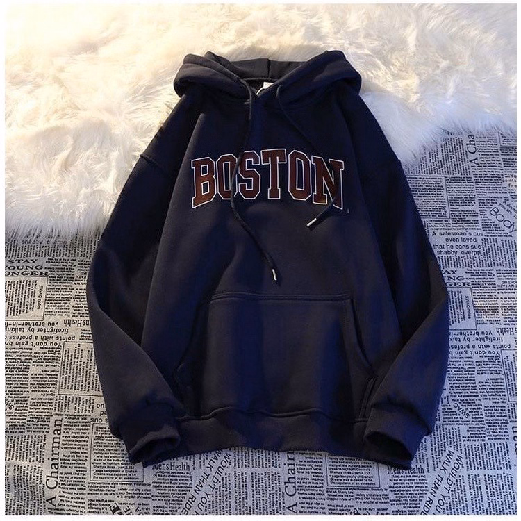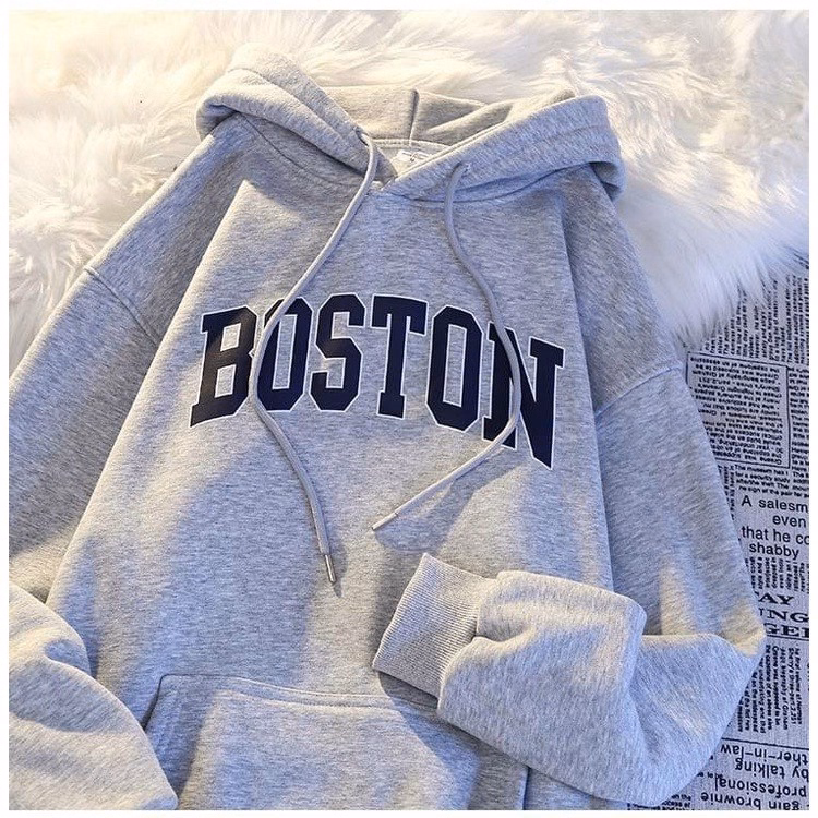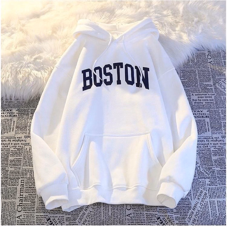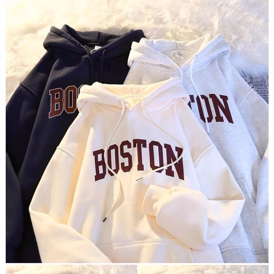 Áo Khoác Hoodie Nỉ Nam Nữ Phối Với Dáng Form Rộng Có Nón Trùm Đầu Siêu Cute Trước Áo Có In Chữ Boston Đậm Nét Cá Tính Áo Đẹp Hàng Hot Trend-Htm Fashion