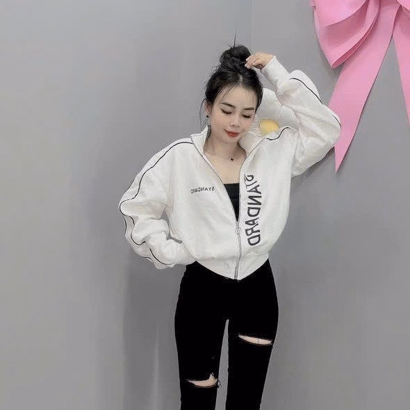 Áo Khoác Dây Kéo Vải Nỉ Phối Sọc Thân In Nổi Chữ Ở Mũ, Có Túi Trong Rộng Tp60 – Golden Dream