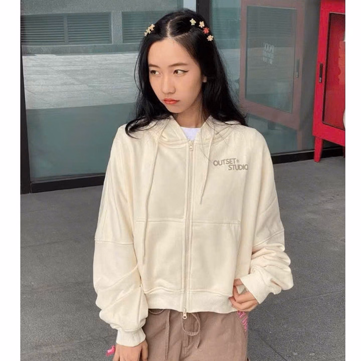 Áo Khoác Croptop Nỉ Nữ Dáng Lửng In Lá Cờ 2 Mặt Trước Sau Có Nón Chống Nắng – Htm Fashion