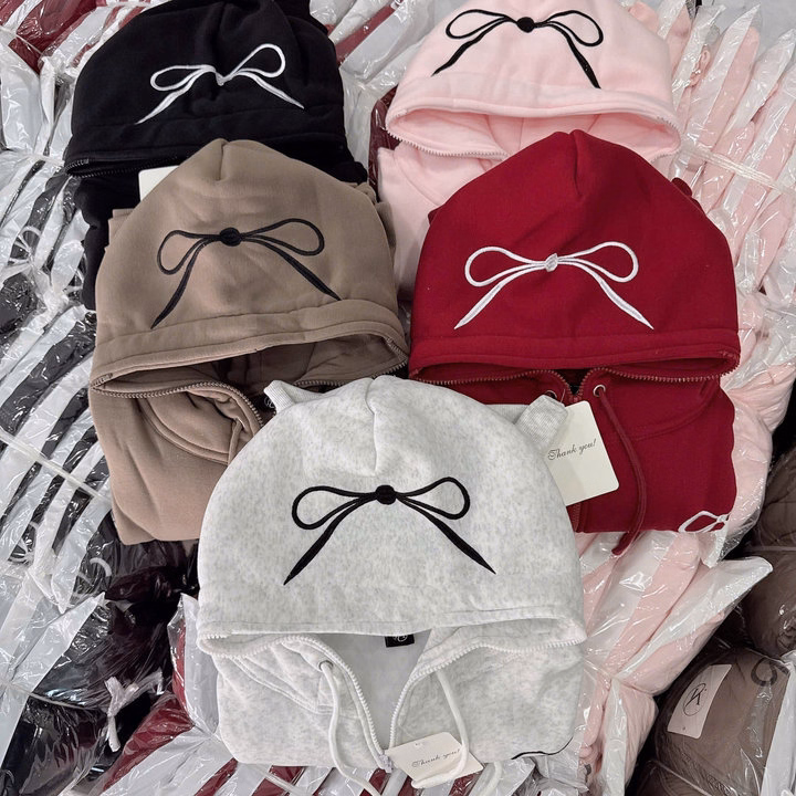 Áo Khoác Hoodie Nữ Có Nón In Nơ Ở Nón Và Ngực – Htm Fashion