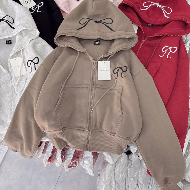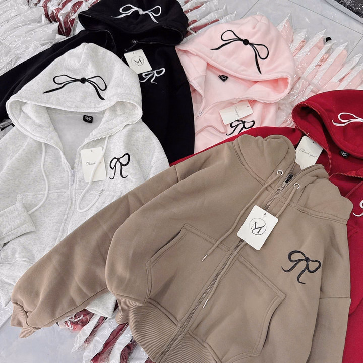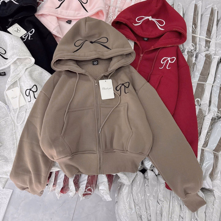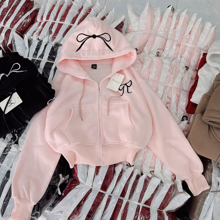 Chiếc áo hoodie croptop thêu nơ siêu xinh dành riêng cho các nàng yêu thích phong cách nữ tính, ngọt ngào và hiện đại. Với thiết kế croptop nhẹ, khoá kéo tiện lợi và họa tiết nơ thêu tinh tế trên nón cùng ngực áo, chiếc áo mang đến vẻ ngoài ngọt ngào, đáng yêu nhưng vẫn năng động và cá tính.